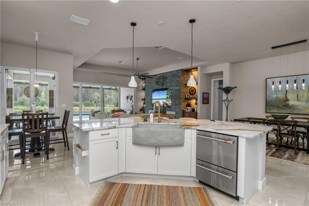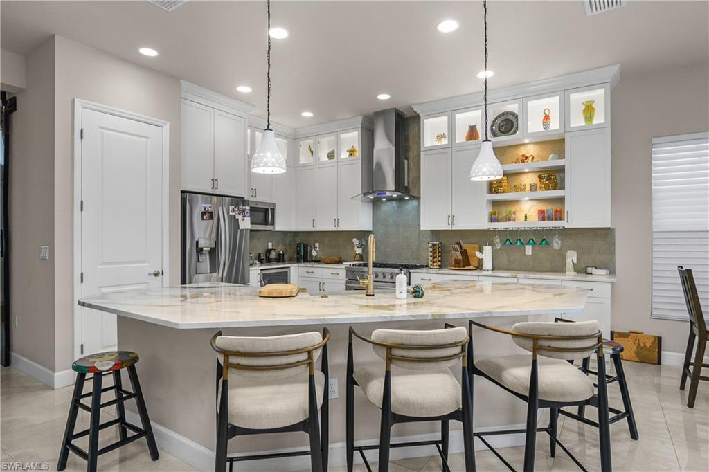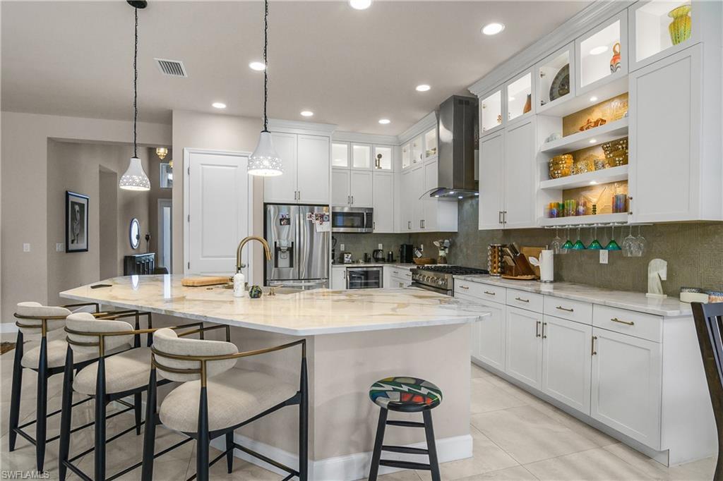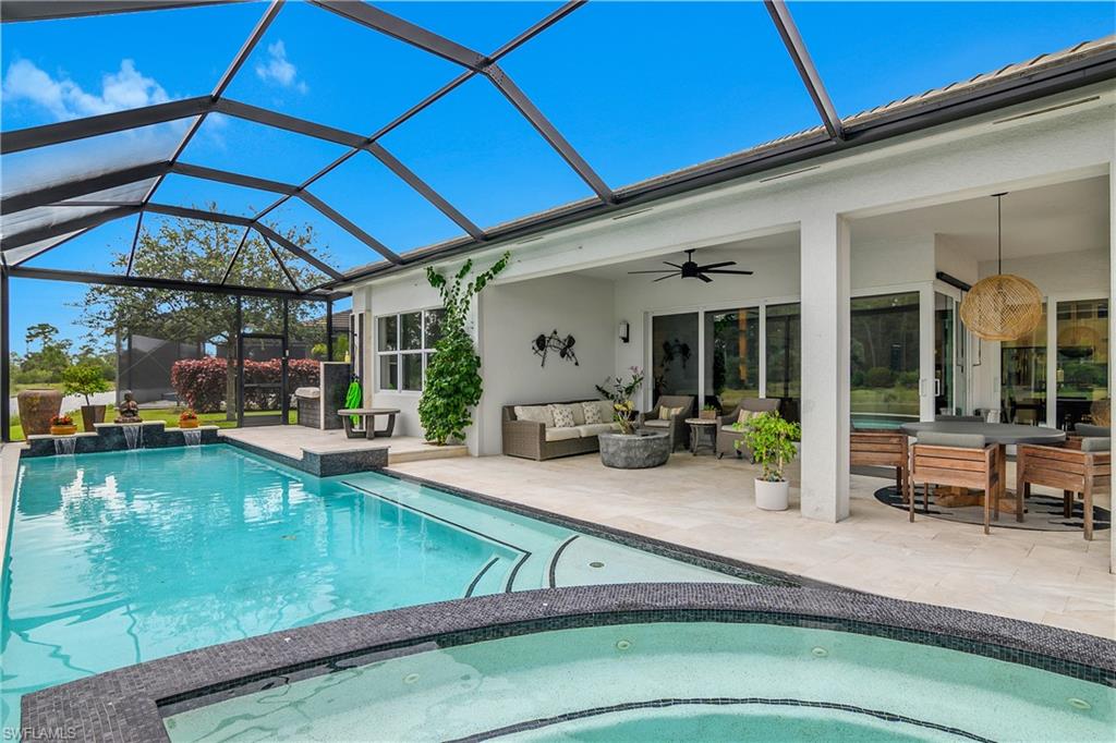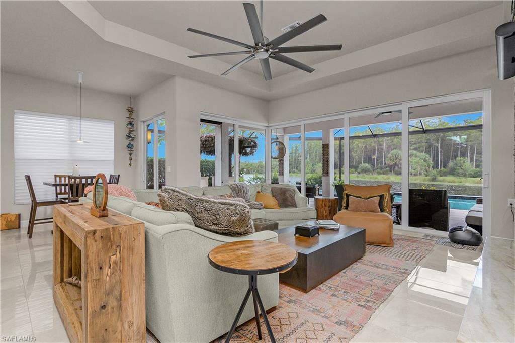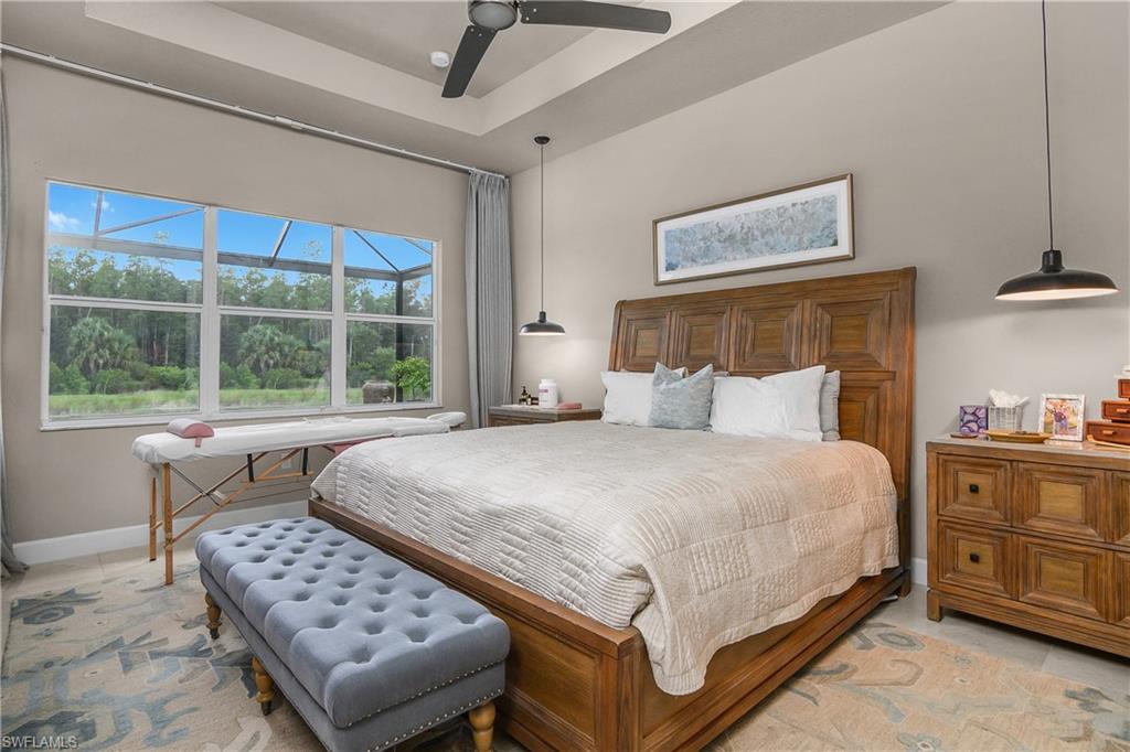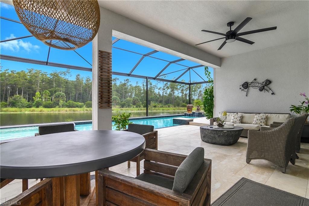 Welcome to this stunning Chandon model home in the highly sought-after 55+ community of Valencia Bonita. This beautiful Chandon model has one of if not the BEST WATER AND PRESERVE VIEWS on a perfectly, extremely private pie shaped lot. This home has been significantly upgraded which features upgraded porcelain tile throughout (no carpet), gorgeous custom barn doors to den, a gourmet kitchen with 6 burner professional grade gas stove, beautiful granite, stone farmhouse sink, counter depth refrigerator, open lighted shelves and lighted cabinets going to ceiling, along with a custom glass back splash and a double dishwasher. The living room features a stone accent wall with custom built in cabinets, open lighted shelves, electric fireplace, and recessed TV. The hurricane sliding doors collapse on both sides to allow for true open indoor/outdoor living. The outdoor space includes gas plumped to the fire pit and outdoor tiki Hut. The tiki hut has 2 under counter refrigerators, a tv, and large grill with logs of counter space to entertain. The hot tub seats 12+ people! The pool is long enough to do laps and afterwards you can rinse off with your outdoor shower which has both hot and cold water. Valencia Bonita offers a premier active adult lifestyle, with full-time sports and social directors, eight pickleball courts, eight tennis courts, state-of-the-art fitness facilities, art and activity studios, and a full calendar of entertainment and social clubs. As a newer community, it is easy to connect with neighbors and build lasting friendships. This home is attractively priced for a quick sale and is available for closing as soon as 30 days. For more information or to schedule a private showing, please contact the homeowner, Nancy Wilson, at 704-651-5181.