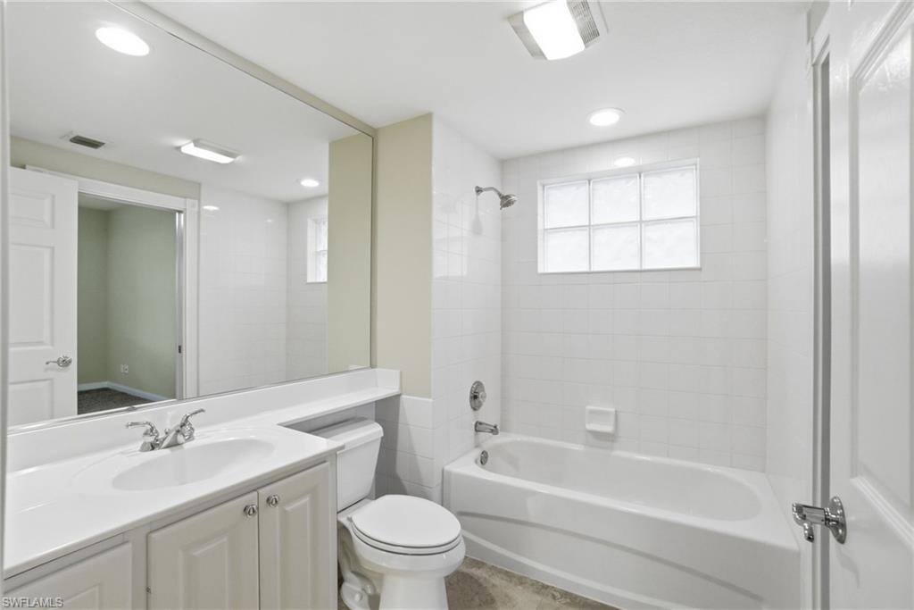 Welcome to 28285 Jeneva Way, a rare, solid concrete-constructed townhome located in the heart of the amenity-rich VillageWalk of Bonita Springs. This move-in-ready 4-bedroom, 3-bath residence offers exceptional peace of mind with a brand-new tile ROOF (2023) and an included 5-year home warranty. The open and airy floor plan is bathed in natural light, highlighting high ceilings and a kitchen equipped with premium KitchenAid stainless steel appliances and ample cabinetry. Designed for flexibility, the layout includes a FIRST-FLOOR BEDROOM with an en-suite bathu2014ideal for guests or a home officeu2014while the upstairs primary suite serves as a true retreat with dual sinks, a soaking tub, and a separate shower.Significant recent improvements include a freshly painted interior, updated exterior trim, refreshed tile and grout, and enhanced professional landscaping. The outdoor living space features a sealed, screened-in patio with upgraded pavers, perfect for enjoying the Florida sunshine. Additional highlights include custom closets, ceiling fans throughout, convenient attic storage on both floors, full hurricane protection, and a 2-car garage. VillageWalk offers a resort-style lifestyle with a vibrant Town Center, on-site dining, fitness center, Har-Tru tennis, pickleball, and scenic walking paths. Ideally located near Southwest Floridau2019s world-class beaches, luxury shopping, and the International Airport, this home offers the perfect blend of quality construction and prime location.