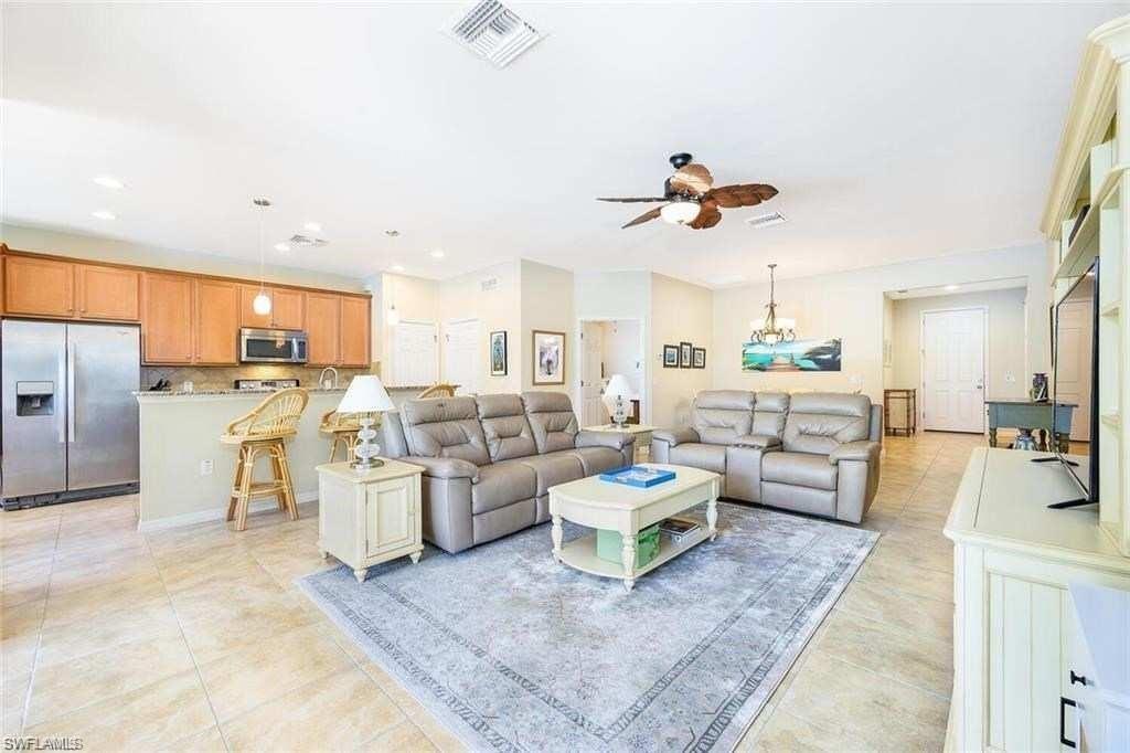 This beautifully furnished 3-bedroom + Den, 2-bath single-family home in the highly desirable VillageWalk of Bonita Springs offers 1,912 sq. ft. of well-designed living space. The home comfortably sleeps six with 1 King bed, 1 Queen bed, and 4 Twin beds. The den is fully equipped as a home office with a desk, monitor, printer, speakers, and more; ideal for remote work or extended stays. The open-concept layout features tile flooring throughout, a spacious living area, and a fully equipped kitchen perfect for entertaining or relaxing.Step outside to the private screened lanai with a sparkling saltwater pool and spa, surrounded by lush landscapingu2014offering a serene and private retreat. Additional conveniences include a 2-car garage, an automatic whole-house generator ensuring uninterrupted power, and comprehensive pest control covering both interior and exterior areas.The home is pet-friendly (up to 25 lbs) and smoke-free. Residents enjoy access to VillageWalku2019s resort-style amenities, including a heated pool, state-of-the-art fitness center, tennis and pickleball courts, bocce, business center, clubhouse, full-service restaurant, community park, car wash, gas station, and scenic walking and biking trails. Located just minutes from the beaches, shopping, and dining of Bonita Springs, Naples, and Estero, this home offers the ideal Southwest Florida lifestyle.Available from January through April at $9,100 per month, with a $2,500 security deposit. Minimum of 120 days required.Rent includes electricity (cap of $250), water (cap of $100), basic cable, internet, pool service, lawn and landscaping, trash removal, and interior and exterior pest control.Please note: An 11.5% state and local transient rental tax applies to all rentals of six months or less.