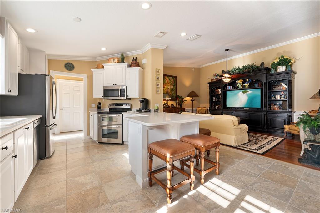 NEW 2026 SEASONAL RENTAL AVAILABLE NOW @ $4,500/MONTH FOR DECEMBER THROUGH APRIL. Welcome to this delightful Capri model home offering 2 bedrooms, 2 baths, and a 2-car garage, all overlooking a peaceful wide lake with beautiful water views. Inside, you will find upgraded neutral tile throughout, creating a bright, airy, and easy-to-maintain living space. The home carries a touch of Old Florida charm, offering a warm and relaxed feel that invites you to unwind, savor your mornings, and enjoy the tranquil natural surroundings right from your lanai. Situated within the highly sought-after Village Walk community, residents enjoy a true resort-style lifestyle with access to a tropical pool, separate lap pool, tennis courts, basketball court, and a vibrant town center featuring a restaurant, business center, bank, hair salon, and even convenient on-site gas pumps. This home combines comfort, convenience, and classic Southwest Florida character, making it a wonderful seasonal retreat.