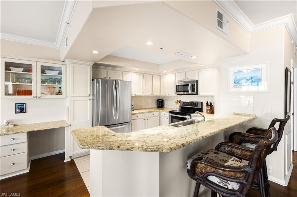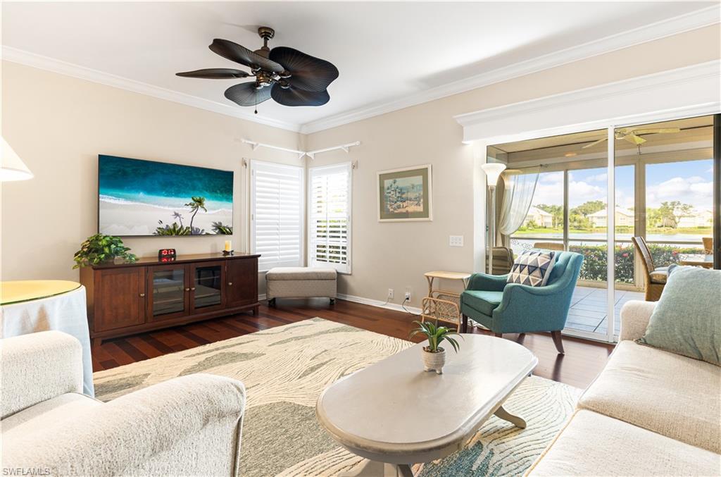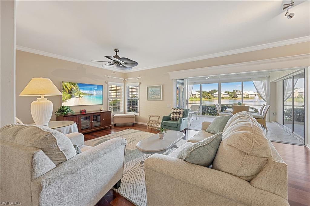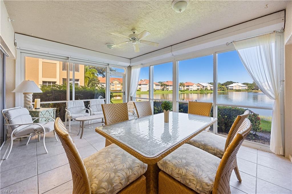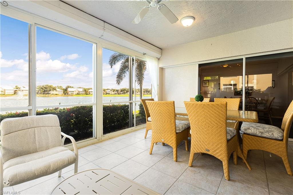 Turnkey 1st-Floor Carriage Home! This beautifully maintained home features an enclosed lanai, adding approximately 200 square feet of additional living space overlooking a serene pond and fountain. Just three buildings away from the neighborhood pool and pickleball courts, the location is unbeatable!The open floor plan is perfect for entertaining, with updated bathrooms, electric hurricane shutters, and thoughtful touches throughout. Enjoy immediate access to the championship golf course, where members may use their own golf carts. The community also offers an active tennis group, bocce, fitness center, resort-style pool, games, dances, and endless activities for every lifestyle. Exciting enhancements are on the horizonu2014including a brand-new cabana with expanded outdoor dining and bar, along with resurfaced tennis and pickleball courtsu2014all with no assessment or added debt to homeowners. Conveniently located near gulf beaches, shopping, dining, and the airport, this home is the perfect place to enjoy the Florida sunshine year-round. New roofs for the Wedgewood Fountain neighborhood! Rented January 6 to April 6, 2026