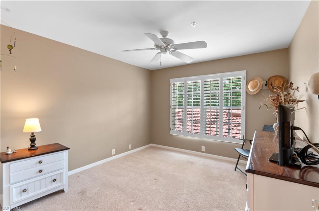 SPECTACULAR LAKE & GOLF COURSE VIEWExperience waterfront living at its finest in this stunning end-unit, second-floor carriage home, perfectly positioned on a premium lot with breathtaking eastern views of the largest lake in WCC. Spanning 1,576 square feet, this beautifully appointed residence combines elegance, comfort, and convenience. Key Features:Unparalleled Views: Wake up to picturesque lake and golf course vistas from your private lanai, offering serene sunrises and abundant natural light throughout the home.Featuring high ceilings create an airy ambiance, complemented by elegant tile flooring throughout with plush carpeting in the bedrooms for added comfort. Kitchen is equipped with sleek stainless steel appliances, perfect for culinary enthusiasts. A dedicated laundry room with a laundry tub streamlines chores, while hurricane shutters provide peace of mind for your lanai. A detached garage provides ample storage, perfect for a personal golf cart and more. Donu2019t miss the chance to own this exceptional carriage home with unmatched views and luxurious details. WE'RE PLEASED TO SHARE THE MEMBERS HAVE VOTED TO APPROVE A SERIES OF EXCITING UPGRADES THAT WILL ENHANCE THE COMMUNITY EXPERIENCE AND PROPERTY VALUES. ALL WITH NO SPECIAL ASSESSMENT TO MEMBERS. HERE'S WHAT'S COMING: A remodeled cabana featuring an indoor/outdoor bar area and pergola with operable and fixed louvers for shaded more outdoor dining. Five new tennis courts Four pickleball courts A new and expanded parking lot Construction on the new cabana is set to begin in Spring 2026.Exciting Community Enhancements Coming to Worthington Country Club Worthington, a premier bundled golf community, offers a distinctive lifestyle complemented by its strategic proximity to I-75, SWFL International Airport, Florida Gulf Coast University, Town Center, Coconut Pointe, Miramar Outlet Mall, Gulf Beaches, Naples, and Ft. Myers Beachu2014all within minutes of reach. u201cNO CDD and YOU CAN HAVE YOUR OWN PRIVATE GOLF CARTu201d.