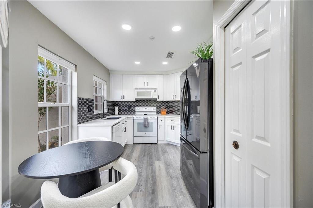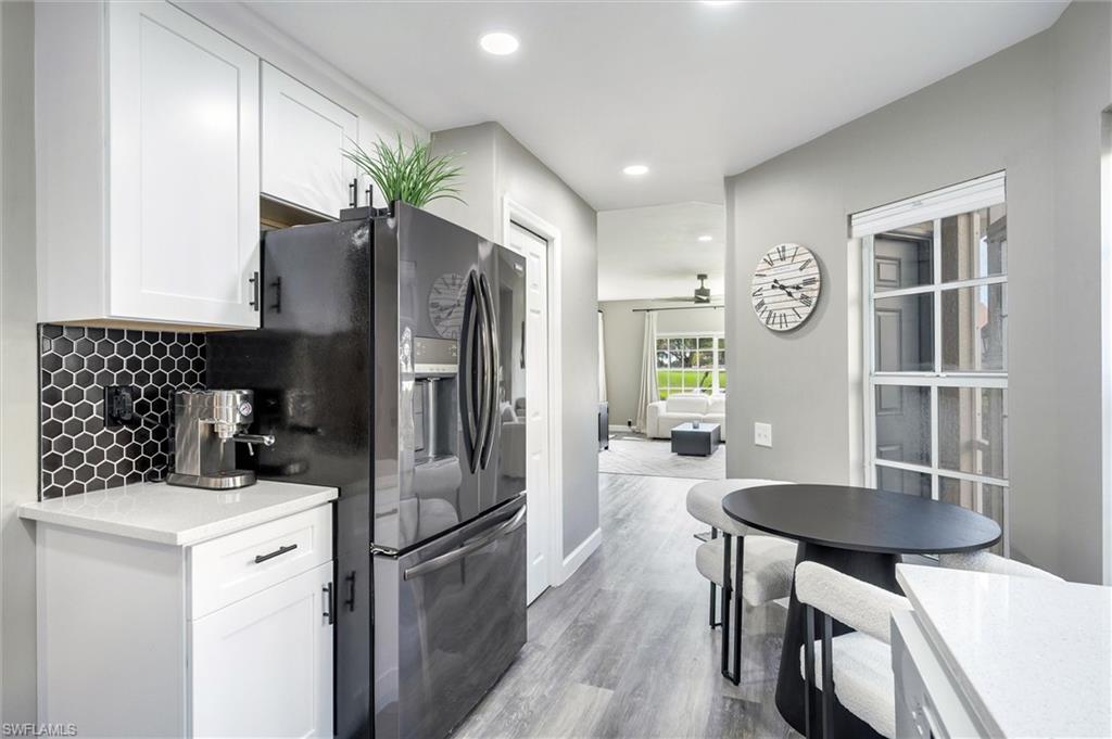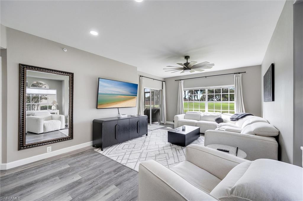 This beautifully renovated first-floor end unit at Worthington Country Club is truly move-in ready. Updated with quartz countertops, white shaker cabinets, luxury vinyl flooring, and white marble-like tile in both the primary shower and guest bath, this three-bedroom, two-bath residence blends modern style with everyday comfort. The open layout offers stunning golf course views and western exposureu2014perfect for taking in those iconic Florida sunsets. The screened lanai connects seamlessly to both the primary bedroom and living room, filling the home with natural light. The primary suite also features a generous walk-in closet and an en-suite bath. A covered carport and additional storage space are included.Worthington Country Club is a premier, gated bundled golf community offering an exceptional lifestyle. Members recently voted to approve exciting amenity enhancements with no special assessments, including an upgraded pool cabana with indoor/outdoor bar service, a new pergola for expanded shaded seating, plus five new tennis courts and four pickleball courts, all slated to begin construction in early 2026. The community also features a newly renovated championship 18-hole golf course, a state-of-the-art clubhouse with dining and pub, resort-style pool, hot tub, and fitness center.Centrally located near Bonita Beach, RSW Airport, world-class shopping, and top-tier dining, this residence offers the perfect blend of convenience and resort-style living.