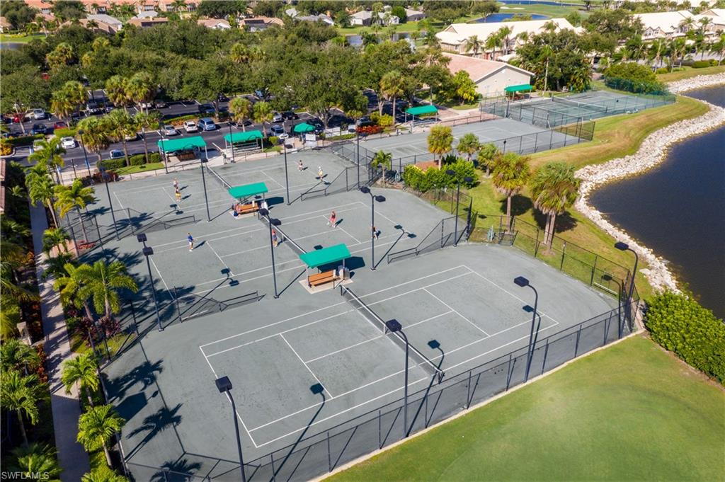 Spectacular lake and golf course views are featured in this FIRST FLOOR END UNIT carriage home with a 1 car garage located in Worthington Country Club. This beautiful carriage home sits on the BEST LOCATION in Worthington with lanai views facing the North and one minute away to the local pool and very close to the clubhouse. The enclosed lanai with hurricane glass sliding doors offers an additional 240 square feet under air. The large kitchen with an island has granite countertops. The kitchen also features a custom-made built-in breakfast bar with storage and a built-in desk. The carriage home windows have been upgraded to hurricane glass. Other upgrades include AC/Air handler 2022, water heater 2022, 5 new ceiling fans, tile and vinyl plank flooring throughout, and baths with marble countertops. BUNDLED GOLF INCLUDED and owners can use their own golf cart on the course with a low trail fee. Worthington Country Club has a complete package of amenities that include a championship par 72 golf course, Har-Tru Tennis courts, Bocce courts, Pickleball, Master Pool with Hot Tub, Cabana Dining next to the pool, Fine Dining in the Clubhouse, Library, Card Rooms, Social Clubs, Fitness Center, Golf and Tennis Pros, and more. Only 15 minutes to the Gulf Beaches!