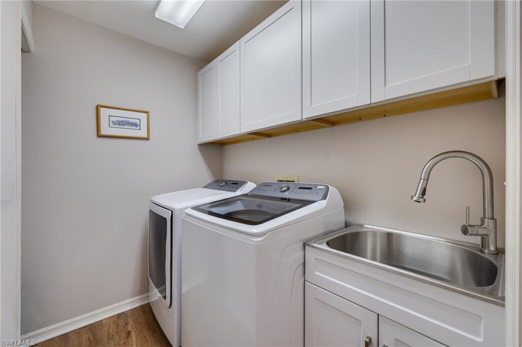 Looking for Bundled Golf?? Look no further! This beautifully renovated carriage home is well-appointed with 3 bedrooms (or it could be a den as it's used now) 2 full baths. Large bedrooms with new LVP flooring. Updated baths, with neutral tile, cabinetry and quartz countertops. The primary bedroom has new flooring, an updated bath and access to the screened balcony. The light and bright kitchen has stainless steel appliances, new quartz countertops and new LED recessed can lights, along with an eat-in kitchen area looking out over the golf course. The living room has volume ceilings and an adjacent dining area. The unit is bright and cheery complete with plantation shutters and the screened lanai has sliding `polyglass` for added protection from the elements...and our occasional cool nights! Come check out all this unit has to offer and then enjoy the clubhouse, pool, tennis and GOLF! Residents are very busy here! Close to Florida's beaches, Naples, RSW, world-class shopping and delicious dining. Come see this property today!