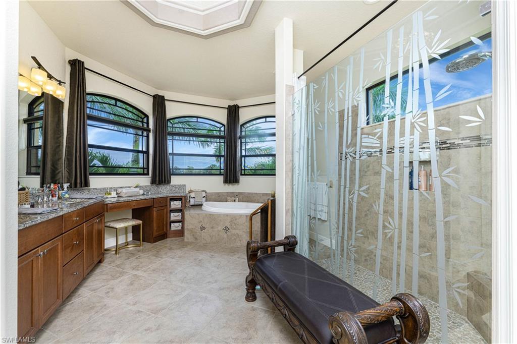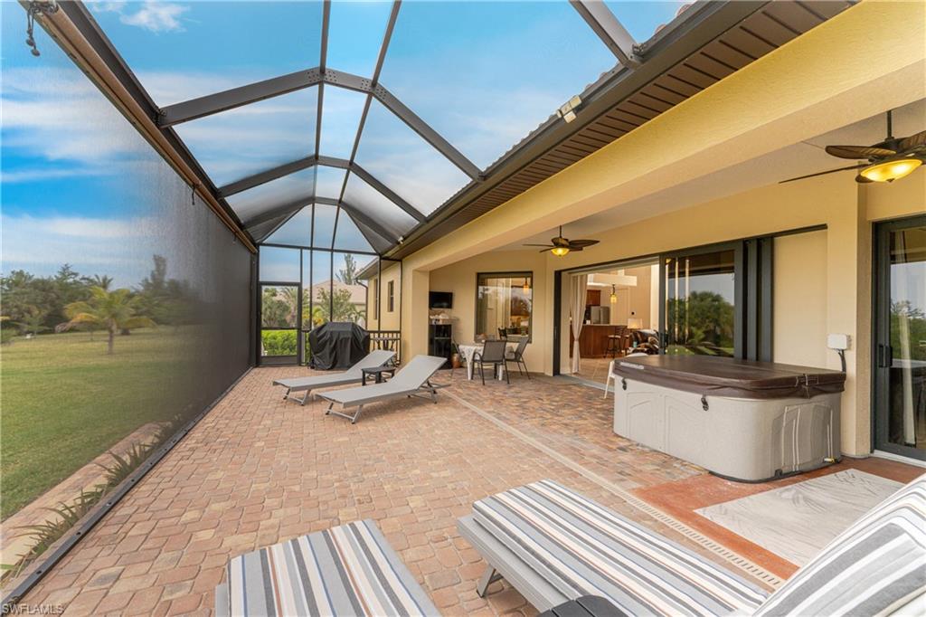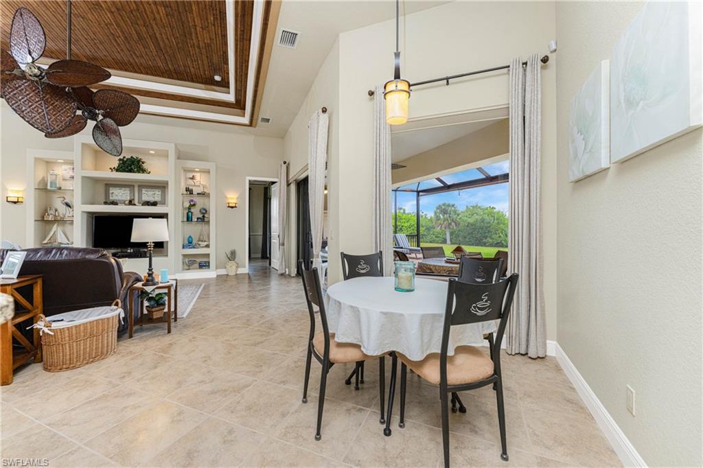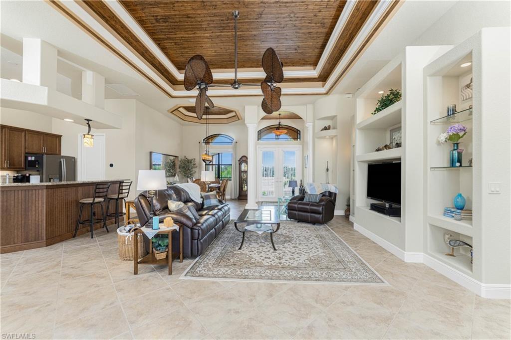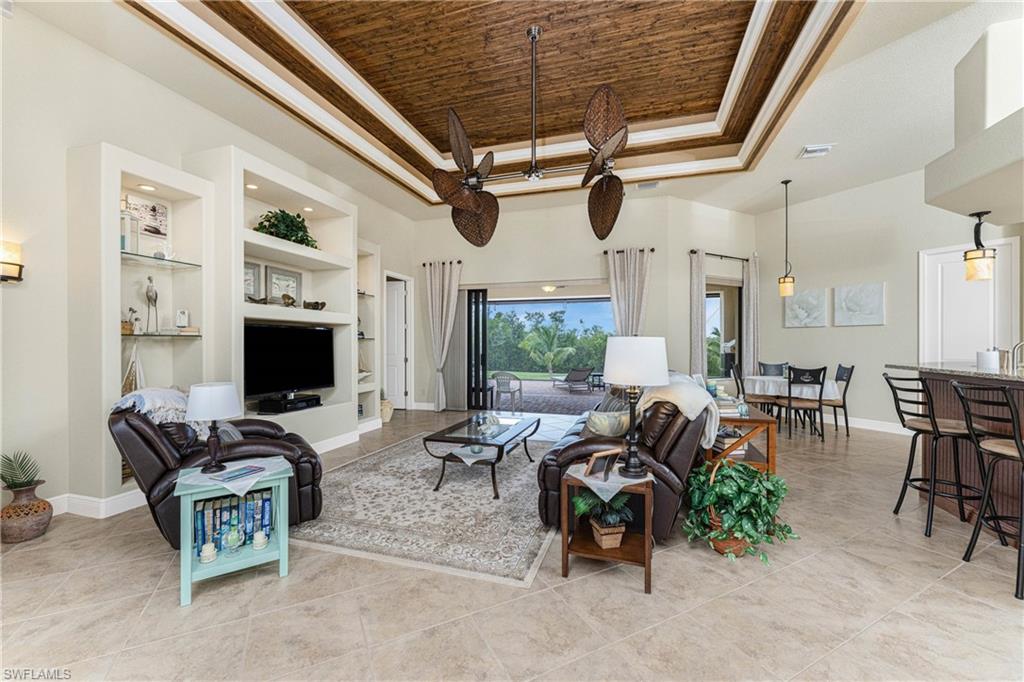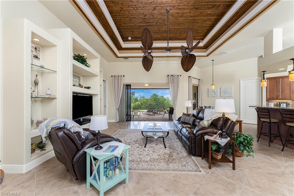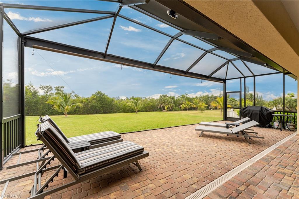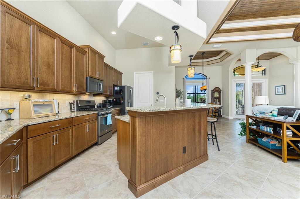 Welcome to this exceptional custom home, where craftsmanship, architectural elegance, and refined design converge to create a timeless appeal. Perfectly situated on nearly an acre of manicured grounds, this home offers the ideal combination of privacy, sophistication, and comfort. Classic curb appeal and lush landscaping set the tone. Decorative columns frame the open Great Roomu2014a breathtaking space for both entertaining and relaxed living. The Great Room features 14u2019u201316u2019 custom double tray wainscot ceilings with crown molding, Fanimation ceiling fan, 8u2019 triple sliding glass doors that fill the space with natural light and open to the lanai. The private, park-like setting beyond offers lush landscaping and mature palms, creating a tranquil backdrop. Throughout the home, 8u2019 doors and detailed trim add to the quality finishes. The gourmet kitchen is a chefu2019s delightu2014beautiful and functional with granite countertops, tumbled stone backsplash, and 42u201d wood cabinetry providing abundant storage. The GAS STOVE and GE fingerprint-resistant stainless-steel appliances make cooking a pleasure. A spacious breakfast bar with pendant lighting invites casual dining, while the full-wall 11u2019 x 7u2019 pantry adds both charm and organization. The adjacent dining area, bathed in natural light, is perfect for everyday meals or formal occasions. The Primary Suite offers a serene retreat with a custom wainscot ceiling, crown molding, chair rail, and dual walk-in closets. The spa-inspired ensuite bath features dual sinks, a built-in dressing table, soaking tub framed by three arched windows, and a step-in shower with bamboo-etched glass and a built-in seat. The guest wing includes two spacious bedrooms with 10u2019 ceilings and 8u2019 doors, plus a beautifully appointed bath with granite vanity, linen closet, and a large walk-in shower. Outdoor living is accentuated, offering an expansive covered lanai and paver deck, fine mesh solar screen cage with a picture window screen that really lets you take in the backyard. Ceiling fans and drop-down sunshades make this the perfect spot for morning coffee and evening relaxation. Additional features include hurricane impact windows and doors, a deep garage with 13u2019 high ceiling and 9u2019 high door and epoxy floor, 2020 5-ton variable-speed A/C, and an irrigation well servicing both lots. From the meticulous craftsmanship to the thoughtful layout, this home perfectly embodies excellenceu2014offering a luxurious yet livable Florida lifestyle. Burnt Store Lakes residents enjoy public water/sewer, a community park with covered picnic areas, playground, and restrooms, plus a kayak ramp accessing Charlotte Harbor and its incredible wildlifeu2014manatees, porpoises, sea turtles, and abundant game fish. Adjacent Burnt Store Marina offers a full-service deep-water marina, restaurants open to the public, golf, and optional dockage. Just a short drive to Downtown Punta Gorda or Cape Coral, this location provides the best of Southwest Florida living.