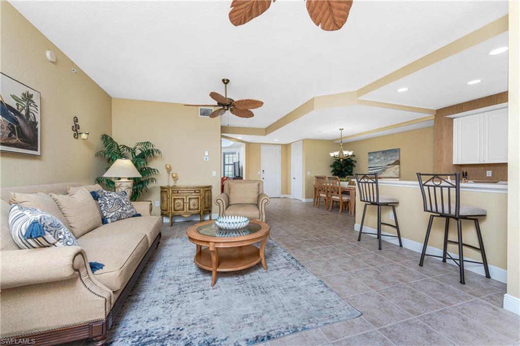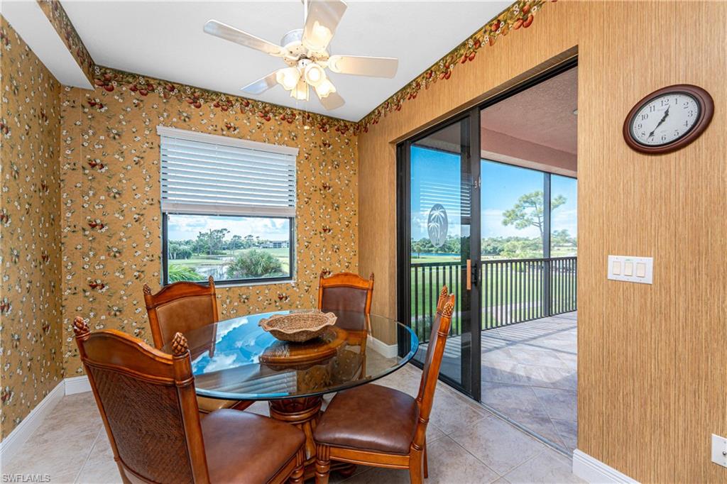 Breathtaking panoramic golf and pond views provide the perfect backdrop from this fabulous turnkey-furnished condo. This spacious two bedroom plus den residence is perched on the third level and is serviced by an elevator and two screened in staircases. Step inside to find an inviting open layout overlooking Burnt Storeu2019s picturesque golf course. The main living area boasts tile flooring, a spacious dining room, and a breakfast bar that seamlessly connects the light-colored kitchen to the living space. The sprawling kitchen is equipped with abundant cabinetry that is sure to accommodate all of your kitchenware and serving pieces, with generous work surfaces and handy desk. A nice sized pantry allows you to store lots of groceries and goodies! The family chef will be delighted by the brand new stainless steel appliances. A cheerful breakfast nook offers direct access to the lanai and enjoys views of the golfers and wildlife below through the large window. Outdoor living is at its best with a large screened and tiled south facing lanai, which enjoys Florida sunshine all day. A great place to lounge with a good book or enjoy your favorite meal al fresco with friends and family. Unwind in the expansive primary suite which also has direct access to the lanai and dual walk-in closets. The bath offers dual sinks, tiled walk-in shower, and relaxing garden tub. A spacious den with double doorway is currently being used as a TV room, but can be used as an office or overflow bedroom by adding a set of French doors. The private guest wing provides a welcoming bedroom and bath, ensuring comfort and privacy for visitors. Additional highlights include a dedicated laundry room, impact glass windows, under-building parking with a private oversized two-car garageu2014plus an optional golf cart garage available for purchase separately. This privately gated condominium community offers direct access to the golf course and community via golf cart path, its own heated pool and spa, and had new roofs installed in 2023. Enjoy the vibrant lifestyle offered here - with Burnt Store Marina Country Club just steps away. Residents also enjoy access to two on-site restaurants, a fitness center with tennis and pickleball, and the largest deepwater marina in SWFL.