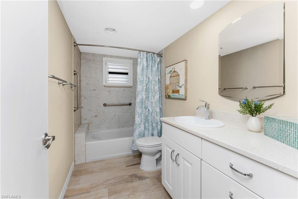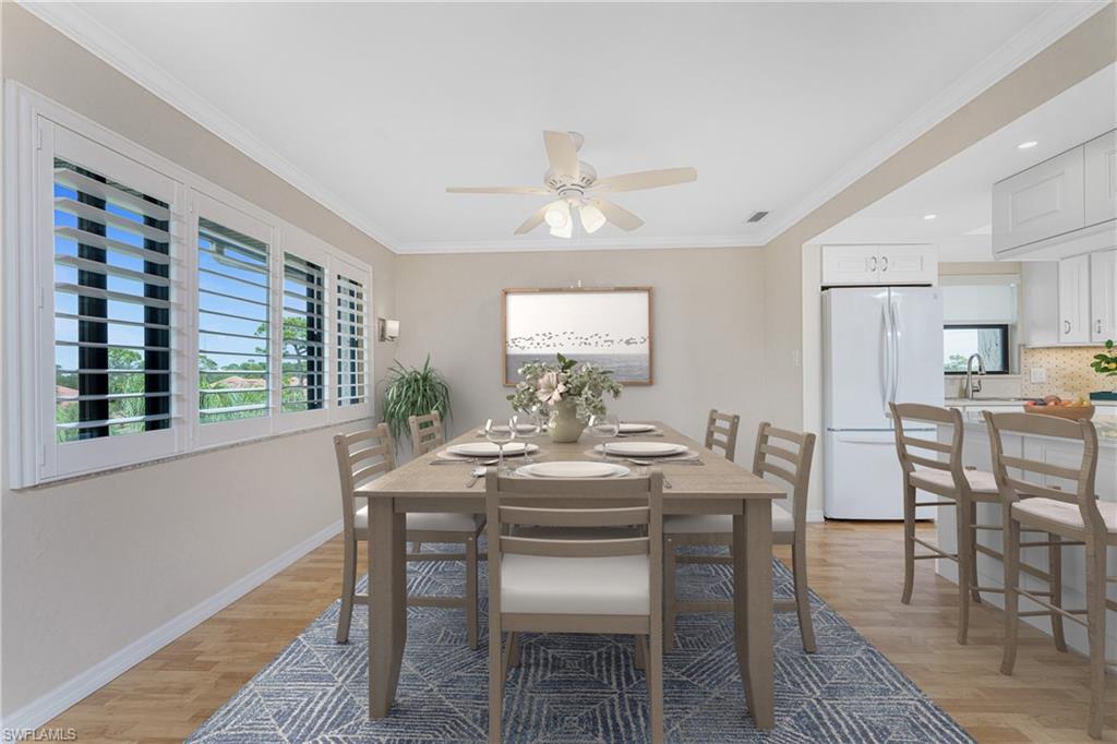 One or more photo(s) has been virtually staged. This beautifully updated Commodore Club condo in Burnt Store Marina offers a blend of thoughtful upgrades, flexible living space, and a peaceful, park-like setting. As a top floor end unit, the condo enjoys extra natural light, including a window in the kitchen, and open views from the lanai where you can take in the expansive green space while still enjoying the gentle rhythm of neighborhood activity. The enclosed lanai features triple-pane impact sliding doors, creating a comfortable year-round space to relax, entertain, or simply enjoy the scenery. The kitchen and bathrooms were remodeled in 2019 by Sandstar Remodeling, with a design that prioritizes both style and function. The kitchen showcases updated light cabinetry with pull out drawers, lazy Susans, a spice cabinet, pantry with pull out drawers, stone countertops, and a large open breakfast baru2014perfect for casual meals or entertaining. Updated appliances, including a double convection oven, making this kitchen as practical as it is inviting. Laminate flooring runs throughout the main living areas, with tile in the bathrooms for easy care. The primary bedroom features a door to the lanai, open views, and dual closets, while the remodeled bathroom boasts an updated double vanity and a spacious, beautifully tiled walk-in shower.The guest bedroom is equally versatile, featuring custom Murphy beds with a fold-down table/desk, ideal for hosting guests while maintaining flexible workspace or hobby room options. Additional upgrades include impact windows throughout, AC replaced in 2019, washer replaced in 2024, dryer in 2023, and a water purification, softener with reverse osmosis in 2024, and whole home surge protector in the condo breaker box. The condo is offered partially furnished, making it easy to settle in and start enjoying the Burnt Store Marina lifestyle right away. A convenient storage closet off the screened in entry lanai and covered carport provide conveniences that you are sure to appreciate. The Commodore Club complex offers residents an inviting heated community pool and a spacious clubhouse with an entertaining kitchen. Located in a vibrant, amenity-rich community, residents of Burnt Store Marina enjoy world-class boating and fishing from SW Floridau2019s largest deep water marina, a 27 hole golf course, two restaurants, tennis, fitness and pickleball.