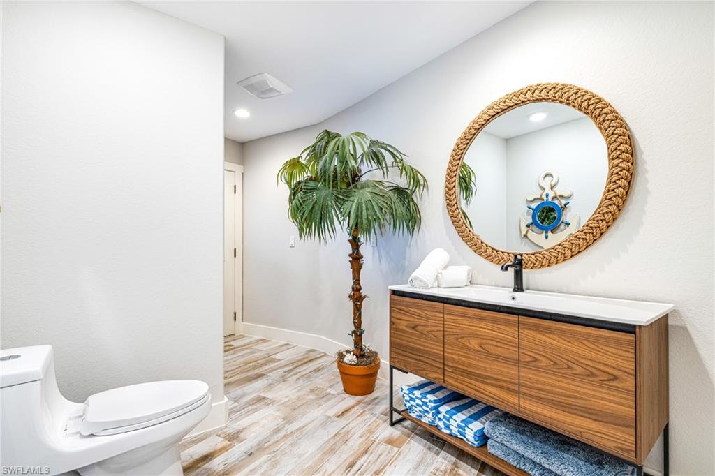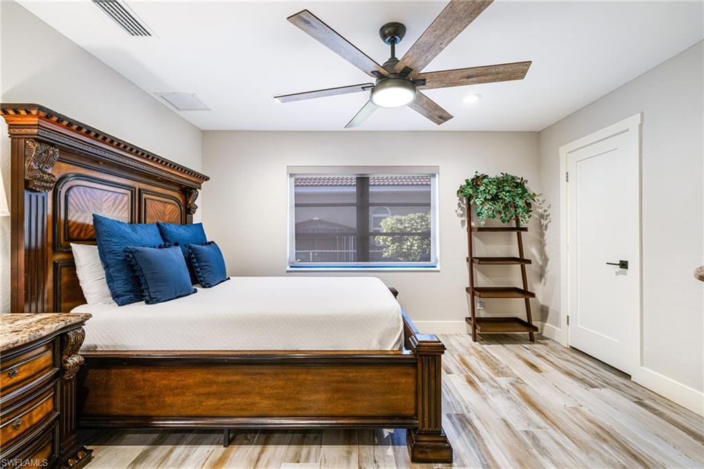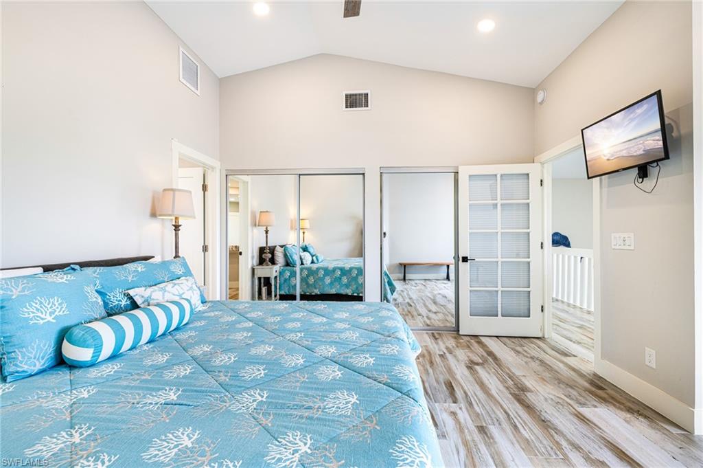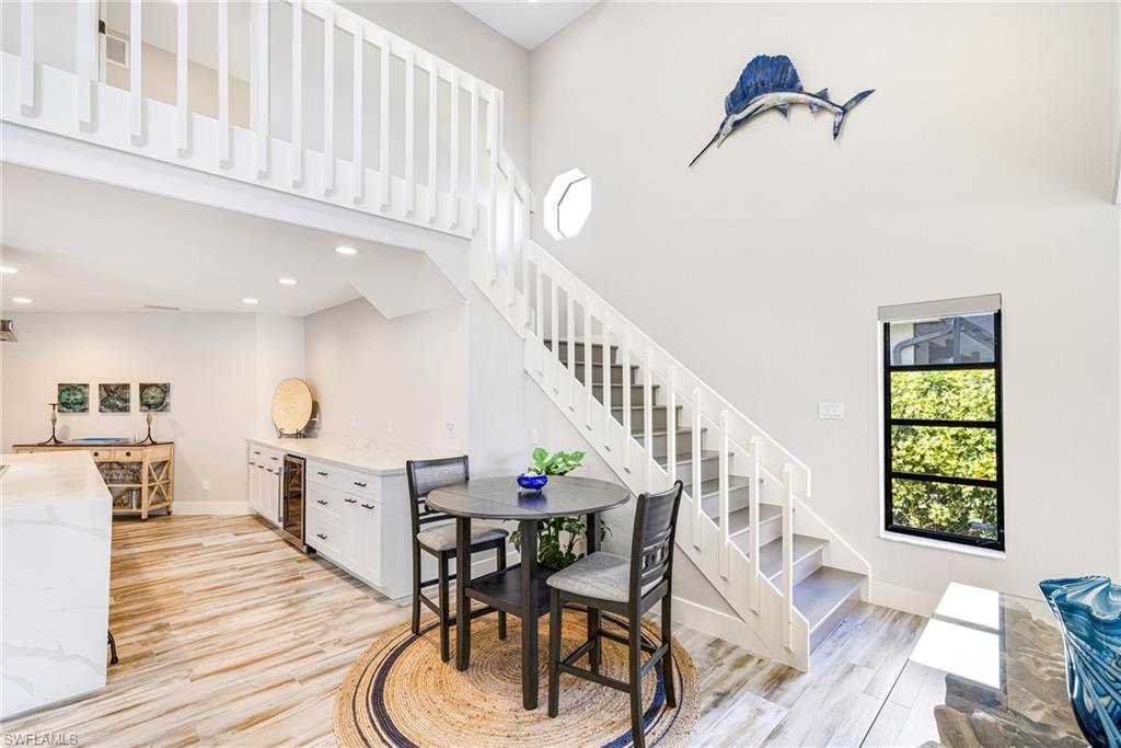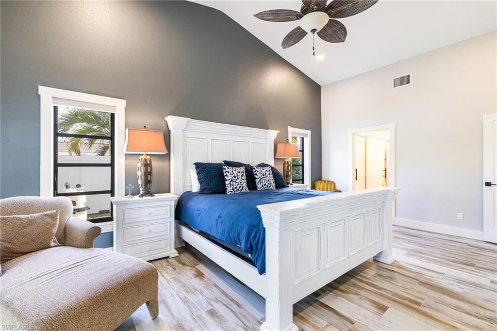 This stunning waterfront pool home has been beautifully reimagined from top to bottom and is offered fully turnkey, delivering a luxurious, easygoing lifestyle in the highly sought-after Palaco Grande boating community. Perfectly positioned on the wide Moody Canalu2014with no bridges or locks and just minutes to the riveru2014this home makes everyday life feel like a vacation. Boaters will love having two slips: a lift for a 25u2019 boat plus a second slip with 50-amp service sized for a larger vessel, giving you the freedom to head out for sunset cruises, long weekend adventures, or quick trips across the river at a momentu2019s notice. Inside, the home lives large and inviting with soaring ceilings, tile flooring, custom closets, raised ceilings, updated trim work, upgraded ducting, two tankless water heaters, and a beautifully redesigned kitchen featuring Bosch black stainless appliances, reverse osmosis, sleek cabinetry, and generous prep space. Every major space has been thoughtfully updatedu2014doors, lighting, fans, landscaping, sod, paint, washer/dryer, and moreu2014creating a clean, modern environment that feels both elegant and comfortable. Indoor-outdoor living is showcased through two enormous 12-foot pocketing glass door walls that completely disappear, transforming the dining and family rooms into open-air gathering spaces overlooking the pool and water. The first-floor primary suite offers private French-door access to the lanai, dual walk-in closets, and a spacious layout designed for relaxation, while a bonus guest room on the main level adds convenience and the second floor provides two private ensuite bedrooms and a loft office perfect for working remotely or creating a quiet reading nook. Step outside and enjoy a true Florida oasis: a refreshed u201cslate-styleu201d tile roof (2019), updated soffits and gutters, upgraded pool lines and equipment, enhanced cage, a generous under-truss outdoor living area with travertine decking, and a sparkling 15' x 30' pool. The Tiki Hut, rethatched in 2021, becomes everyoneu2019s favorite hangoutu2014ideal for evening cocktails, weekend barbecues, or simply taking in the breeze off the water. An oversized garage with an 18' door easily fits two full-size SUVs with room for a workbench and storage. Offered fully furnished with high-end pieces, and with a 2023 Tri-Toon boat available, this exceptional retreat blends luxury, comfort, and pure waterfront funu2014an inviting slice of paradise ready for its next owner to enjoy. Agents see remarks.