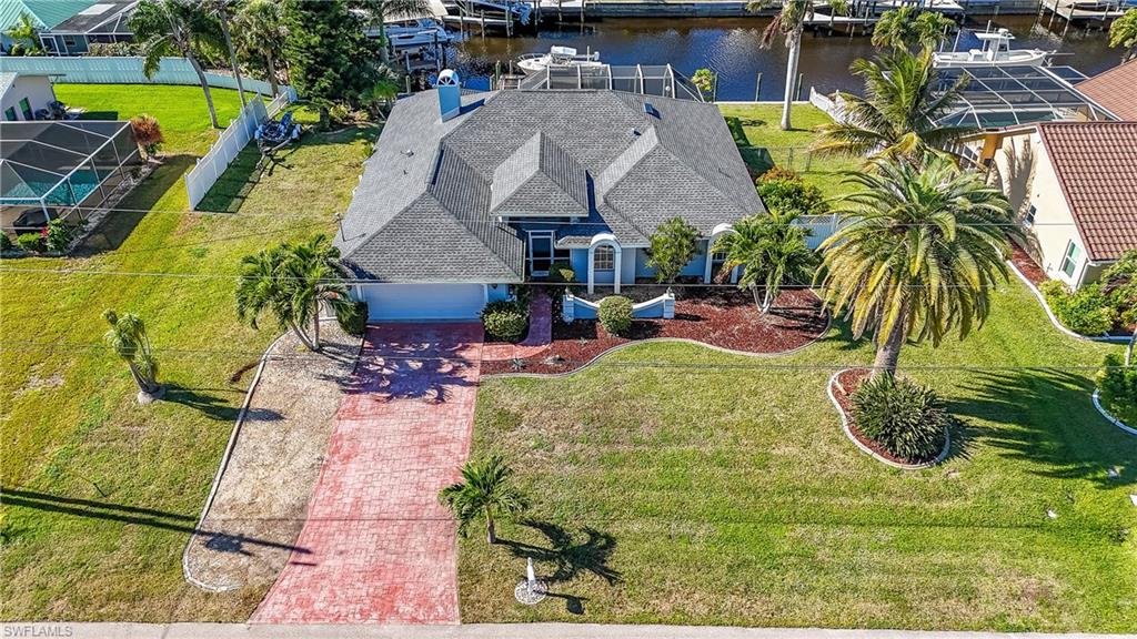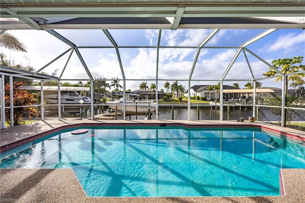 Welcome to your dream waterfront retreat in the highly desirable Palaco Grande Sailboat access neighborhood! This stunning property sits on a triple lot, offering unparalleled proximity to the river. With 120 feet of water frontage and a 26-foot wrap-around boat dock featuring a 10,000-pound lift, boating enthusiasts will delight in the convenience and luxury this home provides. !!!!!!!! Owner Financing. !!!!!!!! Step outside to the refurbished pool cage and newly finished pool area featuring a pebble stone flooru2014a perfect oasis for relaxation and entertaining. Enjoy the convenience of an outside shower after a day on the water. With 2 pocketing sliders leading to the pool area, indoor-outdoor living is seamless and effortless. Families with furry friends will appreciate the fenced doggie area with convenient doggie doors. Cozy up on cool winter evenings by the fireplace, adding warmth and ambiance to the home. Inside, the upgrades continue with all-new luxury vinyl flooring throughout, except for the bedroom. The kitchen boasts new cabinets, level 5 granite countertops, and updated appliances,u2014perfect for culinary enthusiasts. This home has been meticulously maintained with a full professional repaint both inside and out. The AC is 7 years old, the hot water tank is 5 years old, and the roof is brand new as of 2024, ensuring years of worry-free living. Additional features include new blinds and window treatments, and the option for furniture to convey with the sale. Curious about the boat? Inquire about the possibility of including it in the sale, and rest assured that the seller is willing to assist with owner financing with the right down payment. Don't miss this opportunity to own a slice of paradise in one of Cape Coral's most sought-after neighborhoods. Schedule your showing today and start living the waterfront lifestyle you've always dreamed of!
