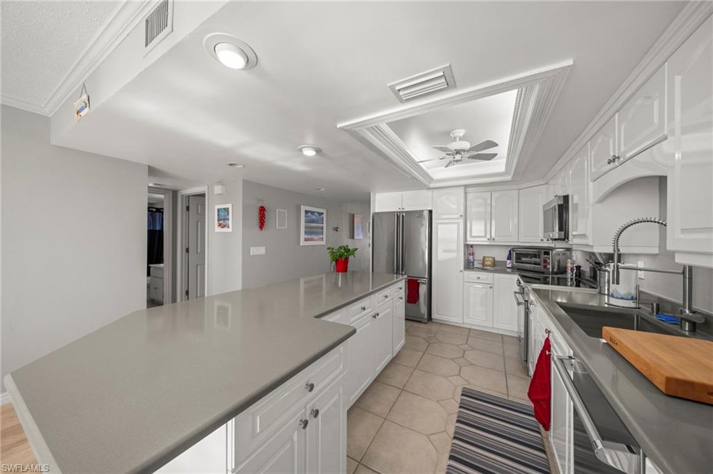 Enjoy panoramic riverfront living with sweeping views of the Caloosahatchee River! PLUS a private boat dock with a 10,000-pound lift, parking garage, and personal storage, all at a great price point for all this condo has to offer. The Rivers Condo is financially secure and beautifully maintained waterfront community where luxury, boating, effortless living, and miles of Caloosahatchee River vistas come together. This impeccably remodeled, fourth-floor corner residence offers a true boateru2019s paradise just steps from the nearly completed 18-million-dollar transformation of Jaycee Park. Wake to glowing sunrises over the water and unwind each evening with spectacular sunsets from your living room and enclosed lanai. The chefu2019s kitchen is a standout, featuring professional-grade Viking and Bertazzoni appliances, including an induction cooktop and convection oven, stone countertops, a large breakfast bar, lazy-susan, and high-capacity disposal. This Kitchen is rarely found at this price point. The spacious owneru2019s suite provides a waterfront retreat with a walk-in closet, and a private bath. A well-appointed guest bedroom great for family and visitors. The enclosed lanai offers additional living space with inspiring river views. Your private dock includes a 10,000-pound boat lift with remote control, water and electric service, and a large dock box, ideal for serious boating enthusiasts. The community offers a large, heated riverfront pool, elevator access, secure under-building parking, and a personal storage locker. This is NOT A 55+ COMMUNITY, making it ideal for all buyers and excellent for long-term resale. Recent building improvements include a new roof 2024 and a new seawall 2025. Available turnkey, allowing you to begin enjoying the Florida waterfront lifestyle immediately. Directly next door, the revitalized Jaycee Park is becoming one of Cape Coralu2019s premier waterfront destinations, featuring a scenic boardwalk overlook, inclusive playgrounds, splash pad, beach volleyball, lawn games, food truck court, picnic and gathering areas, a future bistro, performance bandshell, and beautifully enhanced landscaping, all designed to celebrate the river and create a vibrant community hub. This exceptional riverfront residence combines luxury finishes, boating access, resort-style amenities, and long-term security in one of Cape Coralu2019s most desirable and rapidly improving locations. Located just minutes from dining, shopping, and entertainment, including Starbucks, Target, Publix, and Cape Coralu2019s best restaurants, this condo is also close to the largest and most ambitious projects including Slipaway, The Cove at 47th, Bimini Square, and the 300-million-dollar Yacht Club renovation and Cape Coral's only Beach just minutes away!
