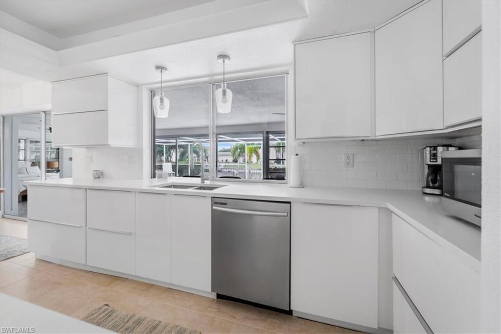Experience the Ultimate Waterfront Lifestyle in Savona!Discover this stunning direct Gulf-access pool home perfectly positioned on one of Cape Coralu2019s most desirable canalsu2014just minutes from the river and Downtown Cape Coral. Nestled in the exclusive Savona community, this modern/retro coastal retreat offers the ideal blend of luxury, comfort, and true Florida living.Completely remodeled with contemporary designer finishes, this 3-bedroom, 2-bath home impresses from the moment you step inside. The open-concept layout showcases tile flooring, an exquisite kitchen with quartz countertops, sleek cabinetry, stainless steel appliances, and tray ceilings enhanced with color-changing LED lighting. The expansive living area flows seamlessly to the outdoor oasis, where panoramic water views create the perfect backdrop for entertaining or relaxing by the heated pool.The primary suite is a private sanctuary with a beautifully renovated bath, dual sinks, walk-in shower, and a custom walk-in closet. Guest rooms are spacious and invitingu2014each with a serene water view. The third flexable bedroom, while not under A/C and without a built-in closet, is bright, airy, and ideal as a guest retreat, creative studio, or waterside officeu2014boasting exceptional canal views.Step outside to your private boateru2019s paradise: two lifts (boat & Jet Ski, added 2020), a paver pool deck, and a dock perfect for fishing or soaking in the brilliant western sunsets. Enjoy quick, unrestricted sailboat access to open Gulf watersu2014no bridges, no locks, just pure boating freedom.Additional upgrades per Seller include a new roof (2022), new A/C (2022), impact windows, and storm shutters for peace of mind. (No flooding during Ian) Conveniently located near premier dining, boutique shopping, and both Cape Coral bridges for easy access to Downtown Fort Myers, beaches, and the islands by car or by boat.Live your waterfront dream in Savonau2014where luxury meets the Gulf.