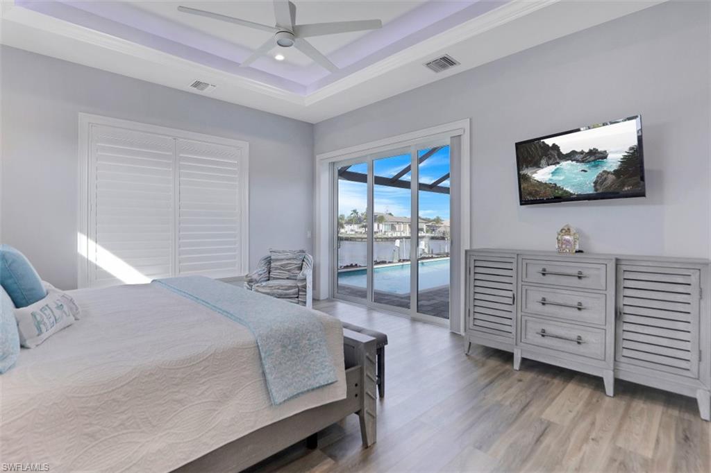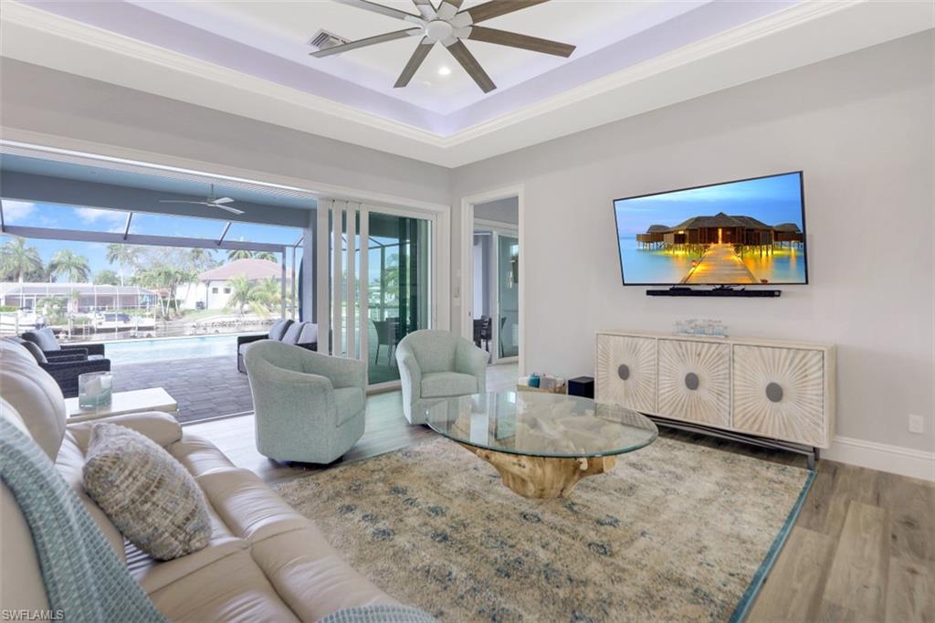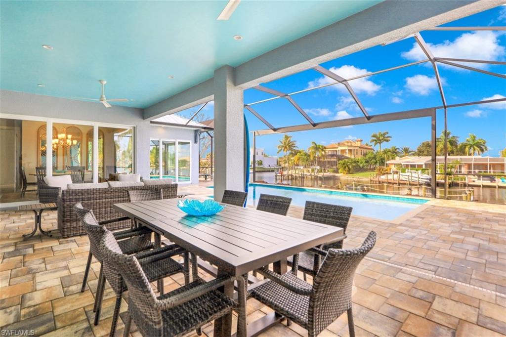 Paradise Found on a 150-Foot Intersecting Canal!!Welcome to The Crosswind, a tropical retreat perfectly positioned on one of Cape Coralu2019s most coveted waterfront locations, just seconds to the river with unrestricted Gulf access. Nestled along a 150-foot-wide canal with breathtaking intersecting water views, this home offers a rare combination of charm, craftsmanship, and coastal luxury.Located within walking distance to the Cape Coral Yacht Club, this property delivers the very best of the Southwest Florida lifestyle, boating, beaches, dining, and sunset strolls, all right outside your door.Built in 2020 to exceed modern hurricane standards, This home was elevated one foot above FEMA requirements and has remained high and dry through previous storm events. This thoughtfully designed home features 3 bedrooms plus a bonus den/office, 3 full baths, and a massive lanai that showcases a resort-style oversized pool with both solar and electric heat. Enjoy breathtaking sunrises and sunsets from the dock with views of the river!Inside, disappearing glass walls, decorative ceilings, and natural island-inspired finishes create a seamless blend between indoor comfort and outdoor living. The open layout invites light and views from every angle, while details like the soft coastal palette capture the essence of paradise.Whether enjoyed as a three-bedroom plus den or a true four-bedroom layout, this home adapts beautifully to your lifestyle and offers endless opportunities for entertaining, relaxing, and embracing the waterfront way of life.A rare opportunity to own one of Cape Coralu2019s finest addresses, where design, durability, and location meet the ultimate coastal lifestyle.