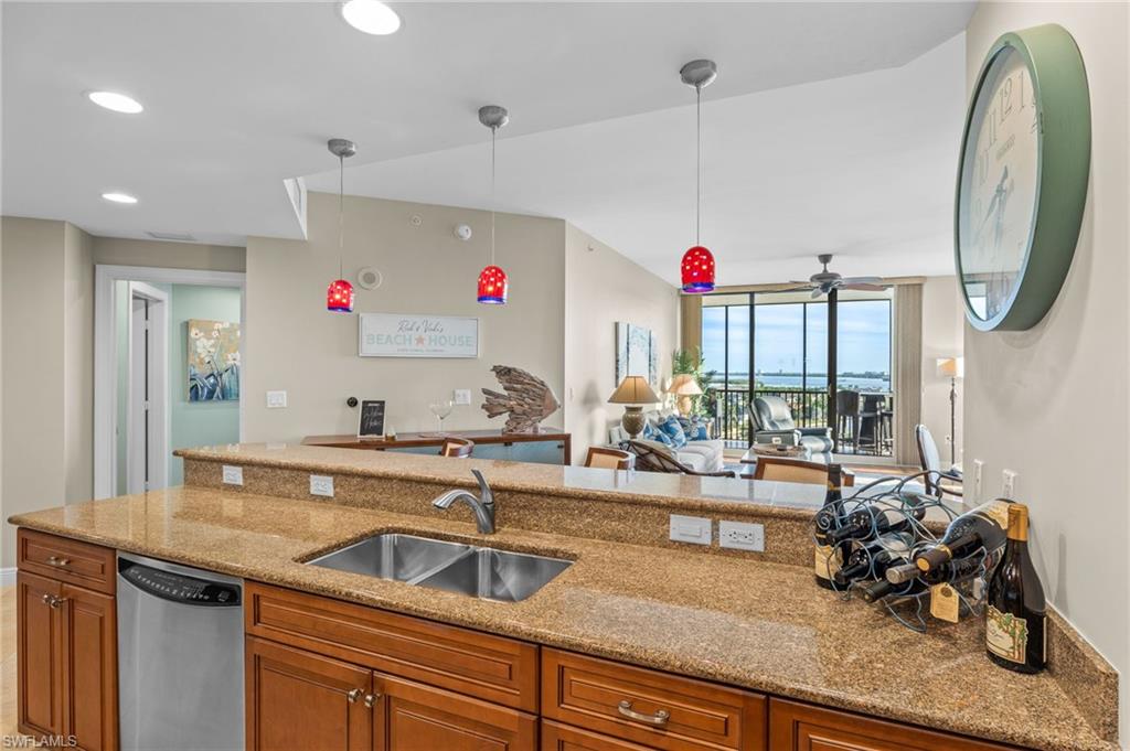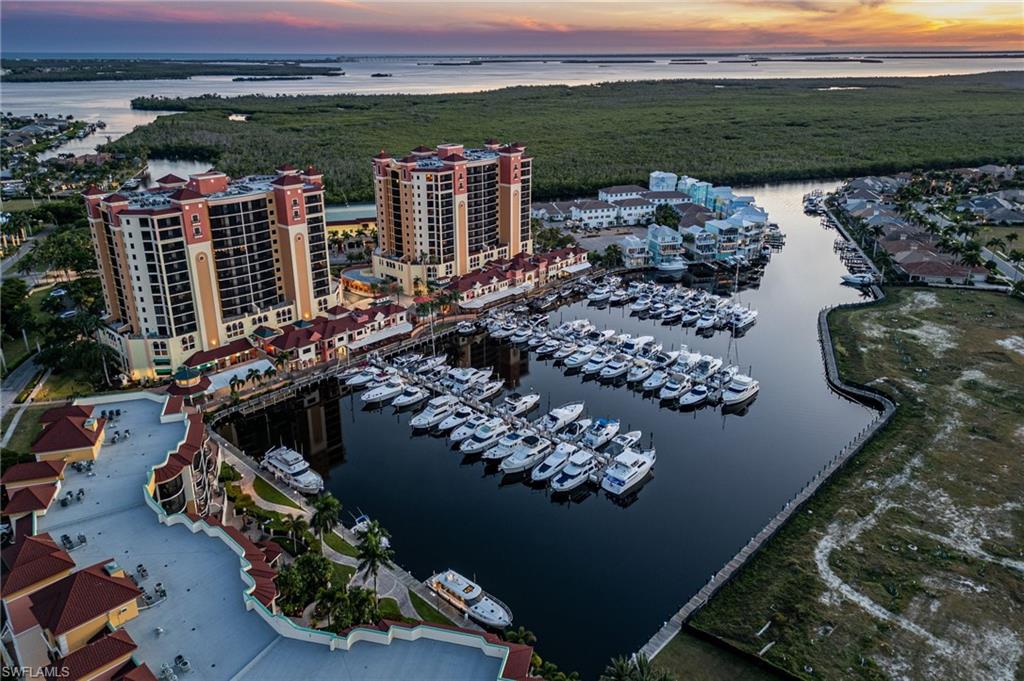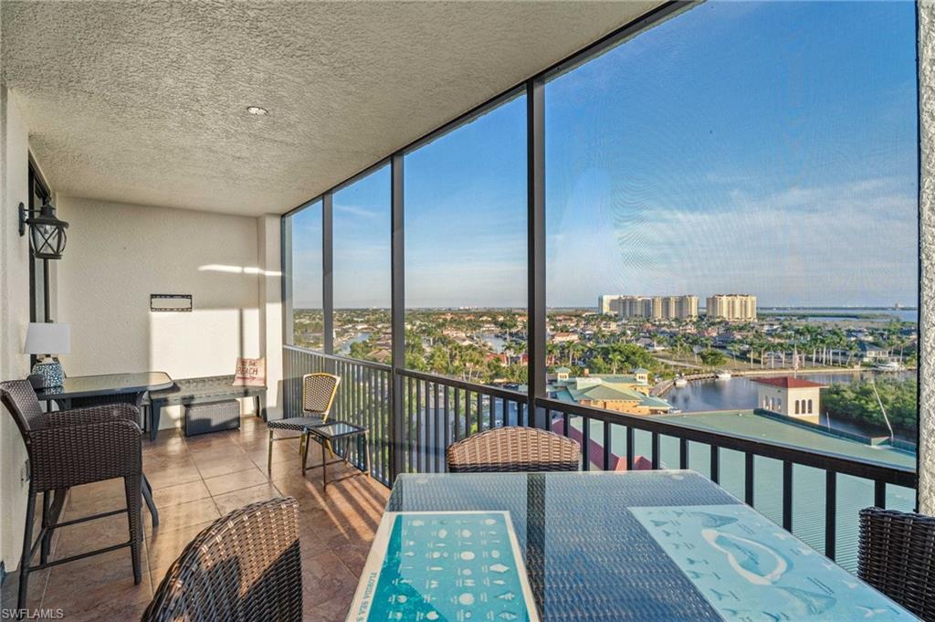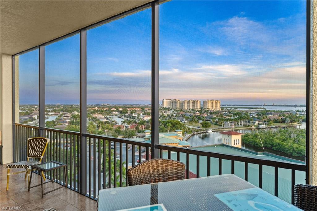 Absolutely stunning 11th Floor corner unit with jaw-dropping views of the Caloosahatchee River, Sanibel Island, Pine Island, and Ft Myers Beach. This unit is move-in ready! The kitchen is equipped with gorgeous wood cabinetry and granite countertops with an expansive bar top perfect for entertaining. The flooring is a perfect blend of tile and luxury wood laminate flooring for both elegance and durability. The split bedroom floor plan makes it ideal for visiting family and friends as they enjoy privacy with their own guest bathroom. The master suite has a large walk-in closet and an ensuite bathroom with dual sinks and a walk-in shower. This condo is ideal for a primary residence or as an investment property for rental income. New AC installed in 2021. Cape Harbour offers tennis, a fitness center, two pools, and a full service marina. Enjoy walking to all of the shops, restaurants, and live entertainment! Donu2019t let this one slip away! Secure your u201cPiece of Paradiseu201d today!