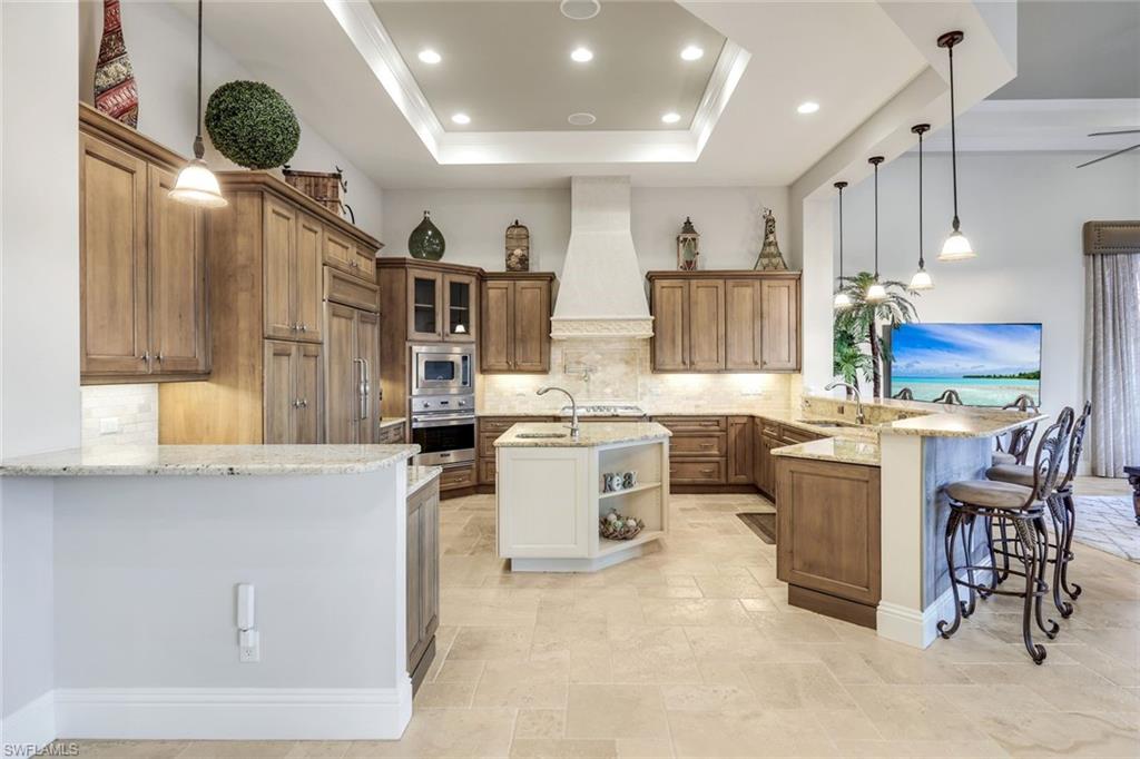 An extraordinary custom-built waterfront estate awaits within the prestigious Cape Harbour Yachting Community, where refined architecture and world-class boating come together. This elegant 4-bedroom + den, 4-bathroom residence is being sold fully furnished and professionally decorated, offering nearly 3,700 square feet under air and an impressive total of 5,452 square feet of sophisticated living space when including the expansive outdoor areas. Designed to impress, the home features soaring volume ceilings, coffered and tray ceilings throughout, crown molding, travertine floors in the main living areas, and rich wood flooring in the bedrooms, all enhancing the homeu2019s grand yet inviting ambiance. Recent enhancements include a new roof, upgraded designer lighting throughout, decorative iron front entry doors, wired-for-Sonos sound system, and a Nest thermostat for modern comfort and efficiency. The gourmet chefu2019s kitchen is a true showpiece, equipped with gas Viking appliances throughout, custom wood cabinetry, granite countertops, a center island, a five-burner gas cooktop with pot filler, wall oven and microwave, and a Sub-Zero refrigerator seamlessly paneled with custom cabinetry. Expansive living areas open effortlessly through corner pocket sliding glass doors to a spectacular southern-exposure, resort-style lanai spanning approximately 2,500 square feet. Outdoor living is elevated with a full negative-edge heated pool, an oversized 16-person spa, multiple gas fire features, and a fully equipped outdoor kitchen featuring a Viking grill, sink, refrigerator, ice maker, and granite bar seating. Electric roll-down sun shades provide comfort while preserving unobstructed canal views. The luxurious primary suite offers private lanai access, dual walk-in closets with custom built-ins, and a spa-inspired bath with soaking tub, dual vanities, a walk-through multi-head shower, and a mirror TV in the master bath that blends seamlessly into the design. Each additional bedroom offers en-suite privacy, ideal for family and guests. Boating enthusiasts will appreciate direct Gulf access with no bridges, a private dock and Captainu2019s walk, placing open water just minutes away. Additional highlights include impact-resistant windows and doors, electric storm shutters, propane gas, tankless water heater, Kenitco water softener, professional landscaping, and close proximity to Cape Harbour Marina, fine dining, boutique shopping, and entertainment. Move in today. Adjacent lot (2216 El Dorado Pkwy W.) available for purchase, offering a rare opportunity to expand or enhance your waterfront estate.
