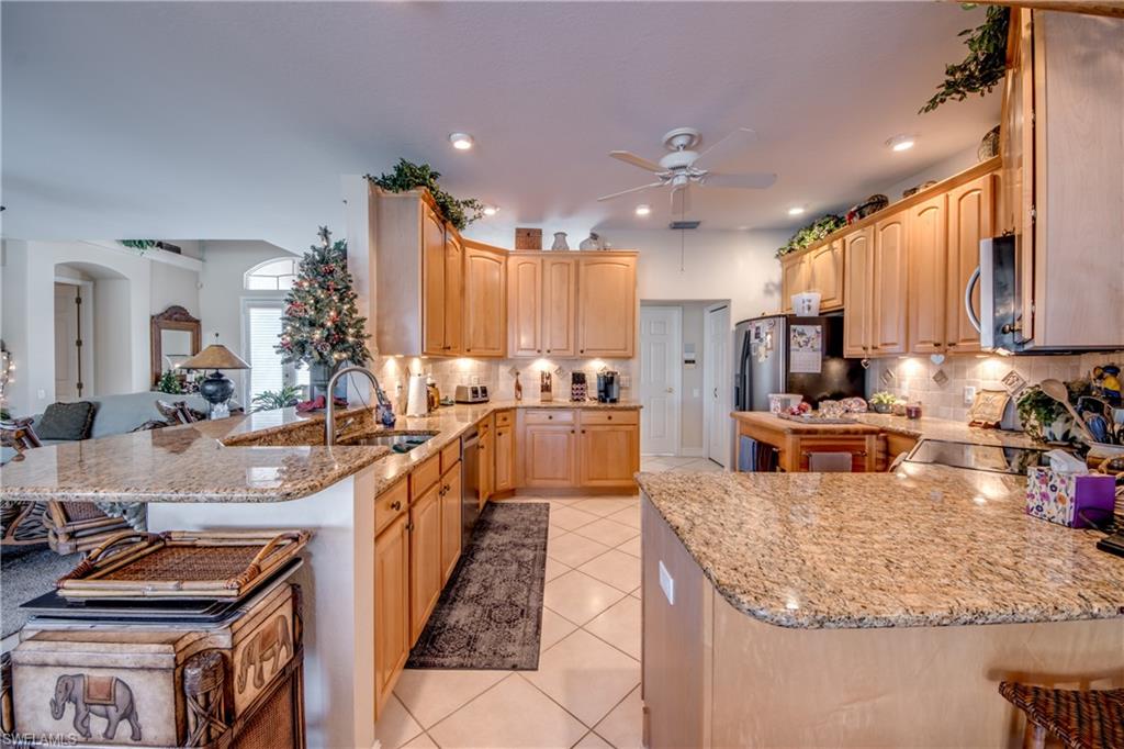 Welcome to Cape Harbor, a stunning gated resort-style marina and boating community offering the best of upscale yet affordable South Florida living. This beautifully finished 3-bedroom, 3-bath home with a 3-car garage and private pool and spa truly has it all. New Tile roof installed din 2025.Featuring an open and airy floor plan with vaulted and tray ceilings, the home is filled with natural light year-round and finished with tile flooring throughout for easy maintenance. The kitchen is complete with wood cabinetry, stainless steel appliances, granite countertops, and a spacious pantry u2014 perfect for entertaining and everyday living.The oversized primary suite with reading area overlooking the pool, offers tray ceilings, a cozy seating area, serene pool views with direct access, and dual walk-in closets. The luxurious en-suite bath includes dual granite vanities, a soaking tub, and a beautifully tiled walk-in shower. Each additional bedroom features its own private en-suite bathroom, providing exceptional comfort and privacy for family and guests.Cape Harbor residents enjoy low HOA fees along with world-class amenities including a full-service yacht marina, clubhouse and community pool, fitness center, tennis and basketball courts, scenic jogging and biking trails, plus exceptional waterfront dining and shopping right within the community.Conveniently located near schools, churches, shopping, restaurants, entertainment, and RSW International Airport.The home also includes a one-year home warranty for added peace of mind.