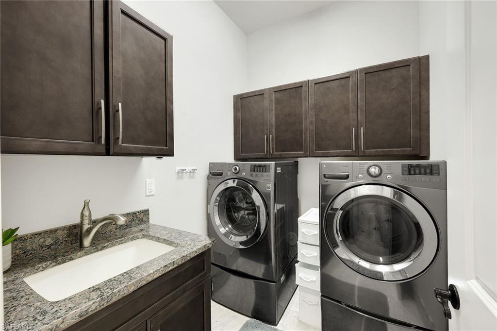 Welcome to this stunning home in the prestigious Cape Royal community of Cape Coral, where elegance, comfort, and golf course living come together beautifully. This 5-bedroom, 3-full bath residence offers 2,997 square feet of thoughtfully designed living space with a desirable split floor plan for added privacy. From the moment you arrive, youu2019ll appreciate the pavered driveway, charming front porch, and impressive double glass door entry that opens into a welcoming foyer and formal dining room. The spacious primary suite is a true retreat, featuring serene lake and preserve views along with a flexible sitting area perfect for a home office, nursery, or private lounge space. The luxurious primary bath includes a large walk-in shower, dual vanities, and a dedicated makeup station. Plantation shutters throughout add timeless style, while the generously sized in-residence laundry room includes a utility tub, washer, and dryer for added convenience. Designed for seamless indoor-outdoor living, the extended lanai with summer kitchen is ideal for al fresco dining and entertaining, all overlooking the beautiful pool with a sun shelf and tranquil water and preserve views. Whether you're looking to live in refined elegance or showcase your golfing skills, this exceptional Cape Royal home offers the perfect blend of luxury and lifestyle. Cape Royal boasts a 27-hole public golf course recently upgraded with irrigation, tee boxes, bunkers, and refurbished greens, along with a clubhouse restaurant and bar, tennis courts, and pickleball courts offering an active and vibrant lifestyle. Residents enjoy an equity ownership in the golf course. Price includes a new exterior paint color of Buyeru2019s choice.