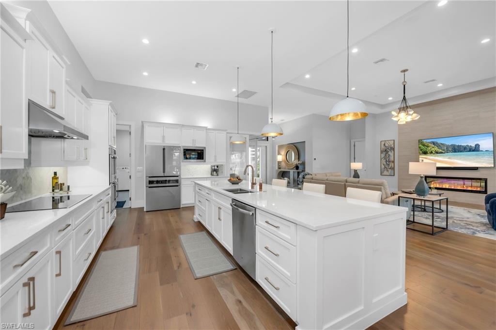 Electric Cooktop, Dishwasher, Disposal, Double Oven, Dryer, Refrigerator/Freezer, Refrigerator/Icemaker, Self Cleaning Oven, Washer, Wine Cooler