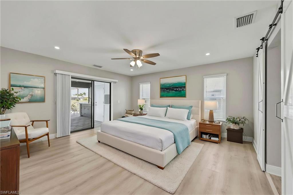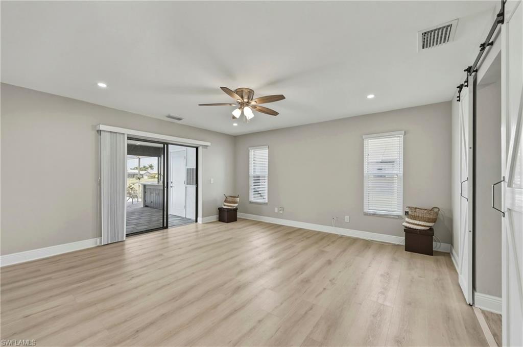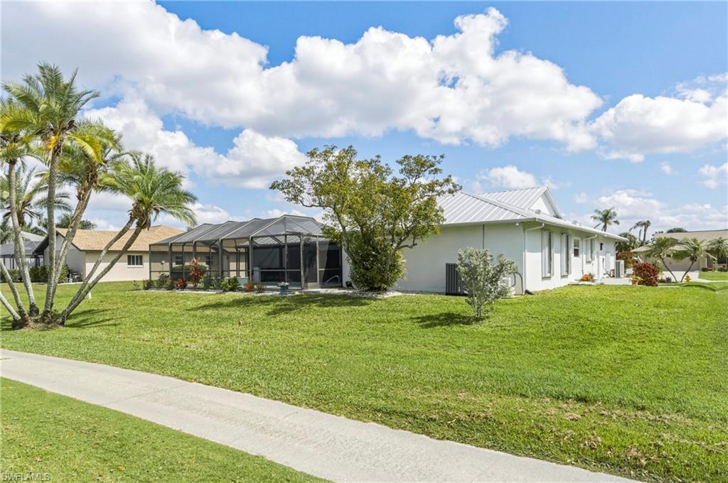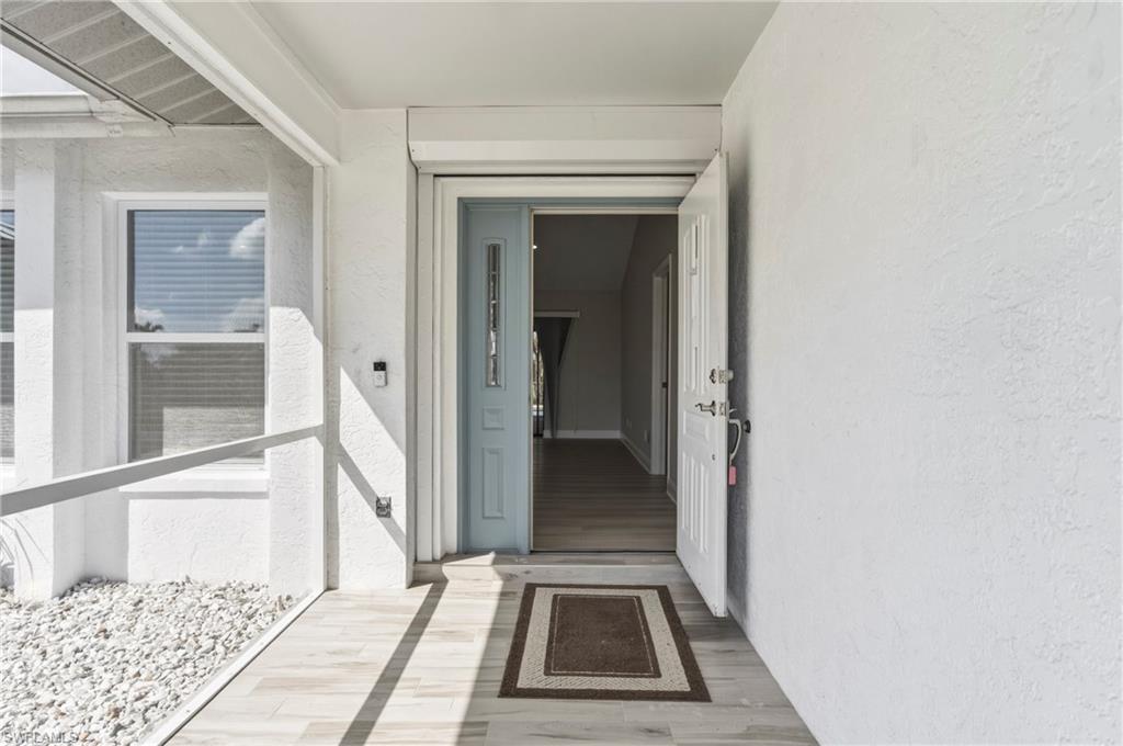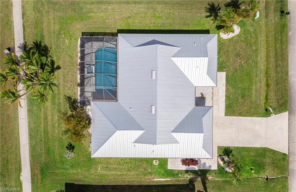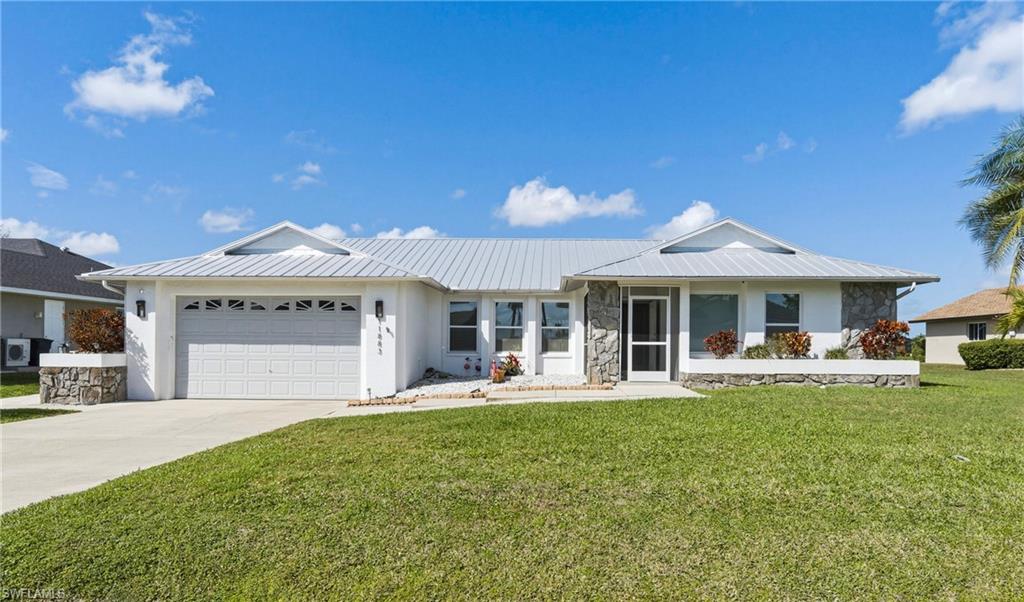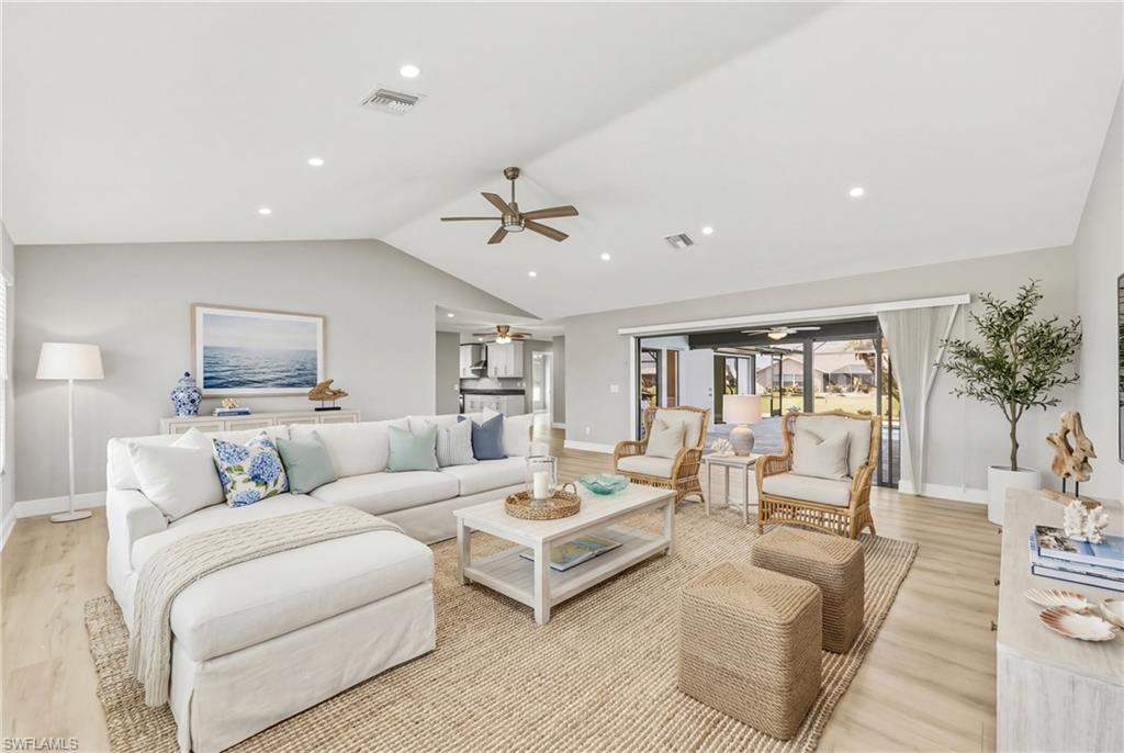 Wake up to sweeping golf course and water views in this beautifully maintained pool home located in the gated Cape Royal Golf Community. Perfectly positioned on a quiet cul-de-sac with no through traffic, this 3-bedroom, 2-bath residence overlooks the 6th tee box and captures some of the most peaceful scenery in the community.Designed to embrace the Southwest Florida lifestyle, the home features an open floor plan with multiple sliding glass doors that lead to the expansive screened lanai. The heated saltwater pool creates a spectacular outdoor living space where you can relax, entertain, and enjoy colorful Florida sunsets overlooking the fairway and lake.The spacious kitchen features quartz countertops and flows comfortably into the main living and dining areas, creating a bright and functional layout. A desirable split-bedroom floor plan provides privacy for guests, while the primary suite offers direct access to the lanai and pool area.Additional highlights include some hurricane-impact windows, remote-controlled hurricane shutters protecting the large lanai, and accordion/manual shutters for the remainder of the home for added storm protection and peace of mind. The home also features a newer HVAC system and updated pool equipment.Cape Royal offers a true country club lifestyle with 27 holes of championship golf set across more than 450 acres with scenic freshwater lakes, yet no mandatory golf membership. Residents enjoy a gated entrance, clubhouse, restaurant and bar, pro shop, pickleball courts, putting and chipping areas, and a short golf cart ride to community amenities. The low HOA fee includes cable and internet.Located in unincorporated Lee County along the Pine Island Corridor, this home benefits from city water service and county-only taxes, while remaining close to shopping, dining, and convenient access to Fort Myers and surrounding areas.Experience resort-style golf course living with spectacular views in one of Cape Coralu2019s most desirable gated communities.