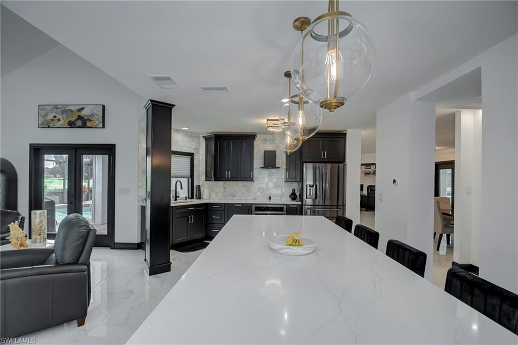 Located in the highly desired golf community of Cape Royal, this 3 Bedroom + Den, 3 1/2 Bath home has been completely renovated and transformed into a sophisticated and modern work of art. The formal dining room, large family room, sitting room and home office provide plenty of space for entertaining guests, friends and family. With an abundance of windows throughout, you will never grow tired of all the natural lighting and eye-pleasing views. The contemporary chef's kitchen is fully equipped with brand new appliances, quartz countertops, waterfall island with a built-in microwave and walk-in pantry. The entire 2nd floor of this home encompasses a breathtaking and luxurious master suite. Complete with its own sitting area, custom walk-in closet, private balcony and master bath - it's the perfect place to delve into comfort and tranquility at your leisure. Upgrades include: Interior/Exterior paint (2023), All new kitchen appliances (2024), New W/D (2025), Custom interior blinds/shutters (2024), Quartz countertops throughout (2024), Polished porcelain floors throughout (2024), New cabinets, light fixtures and ceiling fans throughout (2024), Hot water heater (2024), New toilets in all bathrooms (2024), New pool light (2024), New Saltwater pool system installed (2024), Nest Thermostat (2024), Insulated garage (2024), Mini-split A/C in garage (2024), Custom-built entertainment system with fireplace (2025). So much more to see......book your showing today!