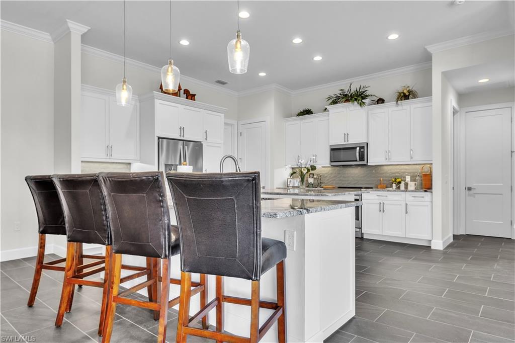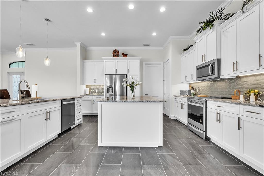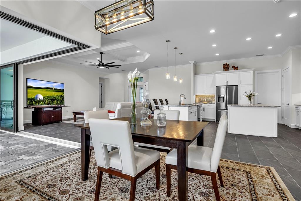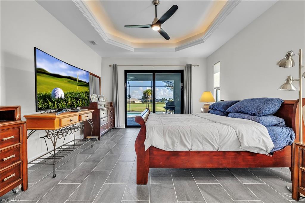 Cape Royal Location, location, location. One of the most beautiful lots on the golf course with a large heated pool 13u2019 x 39u2019 You can get your exercise in, without leaving this home. Enjoy your morning coffee or your evening cocktail from your covered lanai. Tile throughout the entire property and not a pin hole in the walls. Built as a vacation home in 2023, lightly occupied. Low HOA, restaurant clubhouse, 27 hole golf with membership optional. This gated, luxury golf community offers championship fairways, a serene atmosphere and is just minutes to the best dining in the area. Welcome to this stunning home in the prestigious Cape Royal community of Cape Coral, where elegance, comfort, and golf course living come together beautifully. This 3-bedroom, 3-full bath residence offers 2,379 square feet of thoughtfully designed living space with a desirable split floor plan for added privacy. From the moment you arrive, youu2019ll appreciate the paver driveway, impressive double glass door entry that opens into a welcoming foyer and formal dining room. The spacious primary suite is a true retreat, featuring a large heated pool 13u2019x39u2019 along with a flexible sitting area perfect for a private lounge space. The luxurious primary bath includes a large walk-in shower, dual vanities, and a dedicated makeup station. The generously sized in-residence laundry room includes a utility tub, washer, and dryer for added convenience. Designed for seamless indoor-outdoor living, all overlooking the beautiful pool with a NE view. Whether you're looking to live in refined elegance or showcase your golfing skills, this exceptional Cape Royal home offers the perfect blend of luxury and lifestyle. Cape Royal boasts a 27-hole public golf course recently upgraded with irrigation, tee boxes, bunkers, and refurbished greens, along with a clubhouse restaurant and bar, tennis courts, bocce and pickleball courts offering an active and vibrant lifestyle. Residents enjoy an equity ownership in the golf course. Located in unincorporated Lee County with NO Cape Coral taxes, X flood zone rating (no flood insurance required).Discover the perfect blend of comfort, resort style living and luxury. This is your perfect opportunity to own a golf home, outdoor living and a true resort style lifestyle.