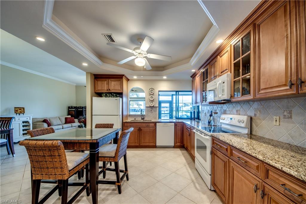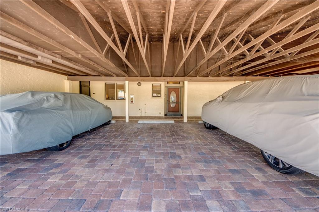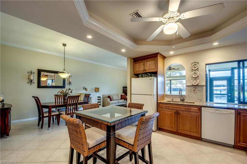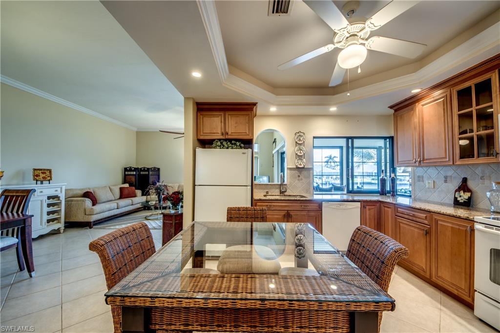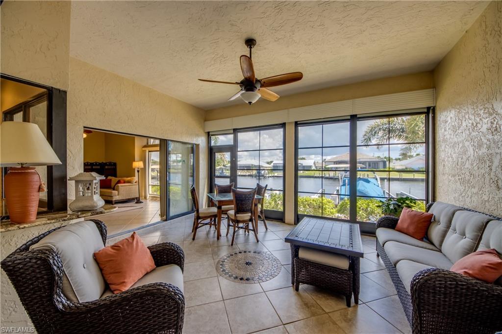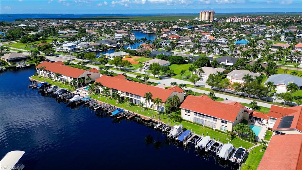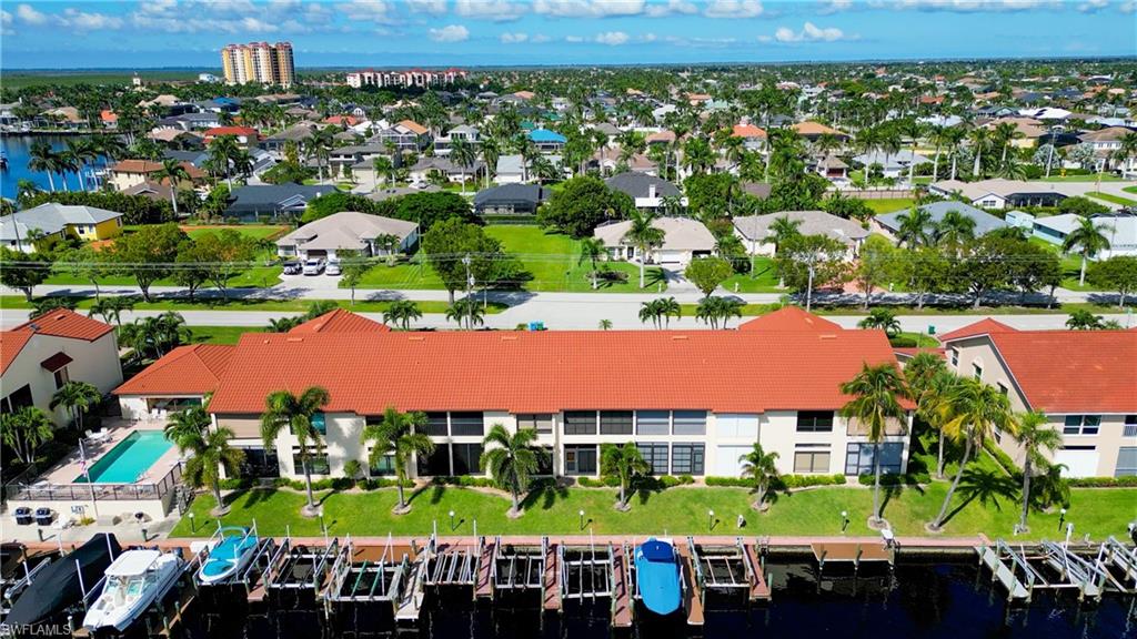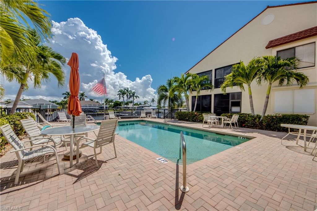 From dawn to dusk, THIS WATERFRONT living carries a TIMELESS CALMu2014mornings begin with sunrises and coffee on the lanai, afternoons drift by with a book you canu2019t put down, and evenings bring a cocktail before a leisurely cruise to dinner by boat. Life at Capstan Condos is all about the waterfront lifestyle on a stunning 200u2019 WIDE CANAL. Open the door to this spacious two-bedroom, two-bath retreat with covered parking and youu2019ll immediately notice what sets it apart. Soaring VOLUME CEILINGS and oversized windows flood the home with golden light, creating an airy, welcoming atmosphere that feels both grand and inviting. This isnu2019t your typical condou2014it was BUILT AHEADS OF ITS TIME, with a UNIQUE DESIGN that makes the kitchen the heart of the home while still giving privacy to both the guest suite and the master retreat. The kitchen is tastefully designed with 36u201d wood cabinets accented by glass doors, crown and rope molding, soft close pull out drawers, granite counters, backsplash and pantry. Entertain with ease as the pass-through opens to the lanai, so you never miss the conversationu2014or the view. The greatroom flows effortlessly to the oversized lanai, where pocketing sliders dissolve the boundary between indoors and out. The master suite is a peaceful retreat on the water, complete with walk-in closet and a spacious bath featuring dual granite vanities with soft-close features. Guests enjoy their own private space on the opposite side of the home, ensuring comfort and privacy. This condo comes with its own ASSIGNED BOAT DOCK AND 6K LB LIFT (and new dock boards) perched on the 200u2019 wide Bronco Canal just around the corner from TARPON POINT and CAPE HARBOR. With only one bridge out, youu2019ll be enjoying the Gulf of America in no time at all. Imagine days spent cruising to Sanibel and Captiva, stopping for lunch at waterfront restaurants, fishing off your dock or simply enjoying the sight of dolphins and manatee playing in your backyard. Dinner by boat isnu2019t just possibleu2014itu2019s YOUR NEW NORMAL. Peace of mind comes standard here!. The building has a BRAND-NEW ROOF, storm-ready doors and windows with a mix of ELECTRIC AND MANUAL ROLL DOWN SHUTTERS. NO water intrusion with any storm. Flood insurance wonu2019t keep you up at night, with a TRANSFERABLE POLICY at just $734/year (subject to insurance co. approval). Capstan is a 55+ community known for its BEAUTIFULLY MAINTAINED GROUNDS AND WELCOMING ATMOSPHERE. Residents enjoy a heated saltwater pool, clubhouse, BBQ area, fish cleaning station, exterior storage, covered carports and pavered parking lot. Tucked among million-dollar waterfront homes, the location is as desirable as it is convenientu2014close to shopping, dining, marinas and just minutes out to the Caloosahatchee River & beyond. This isnu2019t just a condo, itu2019s your well-earned escapeu2014sun-drenched mornings, barefoot boating afternoons and evenings where neighbors become friends and every sunrise feels like a celebration. SUNRISE TO SUNSET, PURE PARADISE!