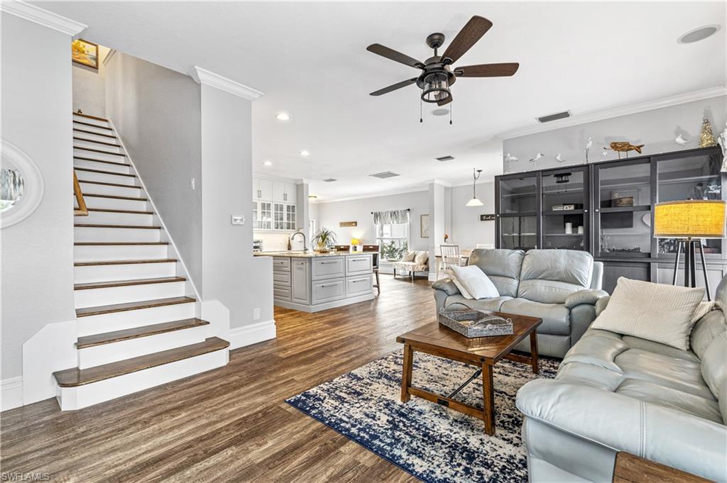 Turnkey and beautifully appointed, this spacious 5-bedroom plus den home is located in the desirable gated Heatherwood Lakes community and is ideal for a second home, relocation, or generational and blended families. Offered fully furnished, this move-in-ready residence delivers both comfort and flexibility.The updated kitchen features crisp white cabinetry with drawers within drawers for more storage space, stainless steel appliances, granite countertops, and a large center island with breakfast bar, perfectly positioned for entertaining and everyday living. The first floor offers the open floor plan todayu2019s buyers want, with a seamless flow between the living room, dining area, kitchen, and family room, along with a convenient powder room.All bedrooms are thoughtfully located upstairs, including two full baths, providing privacy and separation from the main living areas. Step outside to a roomy under-truss lanai that opens to the western exposure pool and spa, creating a relaxing outdoor retreat ideal for enjoying the Florida lifestyle year-round.This home has a new metal `tile look` roof with transferrable warranty, new upstairs A/C unit and new water heater. Pool refinished 2021, pool heater replaced 4 years ago.Located in a well-maintained, gated community with desirable amenities, this turnkey home offers space, style, and convenience in one of Cape Coralu2019s sought-after neighborhoods. Sold turnkey minus personal items, art & decor