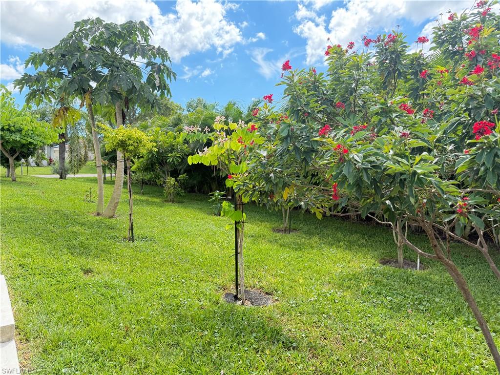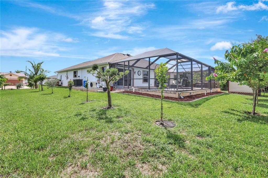 Nestled in the heart of Palmetto Pines Golf Community, this 3-bedroom, 2-bath, 2-car garage home rests on a triple-lot site transformed into a lush botanical paradise with 64 fruit and decorative trees. Step inside to a meticulously maintained split-bedroom floor plan, where the primary suite offers direct lanai access and an electric-heated pool awaits for year-round enjoyment. But itu2019s the landscape that sets this property apartu2014carefully cultivated with avocado, mamey sapote, rollinia, sugar apple/soursop, mango (Nam doc Mai, Pink Chada, Mallika), Meyers lemon, sweet lemon, Persian lime, papaya, banana, fig, pomegranate, guava, coconut, passionfruit, muscadine grapes, and olive trees. Complementing the edible garden, the property blooms with queen and red crape myrtles, bougainvillea, golden dewdrop, wisteria, rose of sharon, and exotic orchid treesu2014a dazzling display of color and fragrance throughout the seasons. Additional highlights include a mini-split A/C in the title floored garage, an outdoor storage shed for versatility, and expansive grounds offering both privacy and opportunity. Located minutes from schools, shopping, dining, and Veterans Memorial Parkway with quick access to beaches and I-75, this home is both a retreat and a gateway to Floridau2019s best. A rare chance to own a living orchard and garden estateu2014designed for those who value nature, space, and elegant lifestyle living.