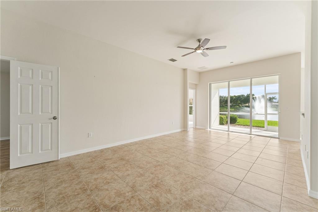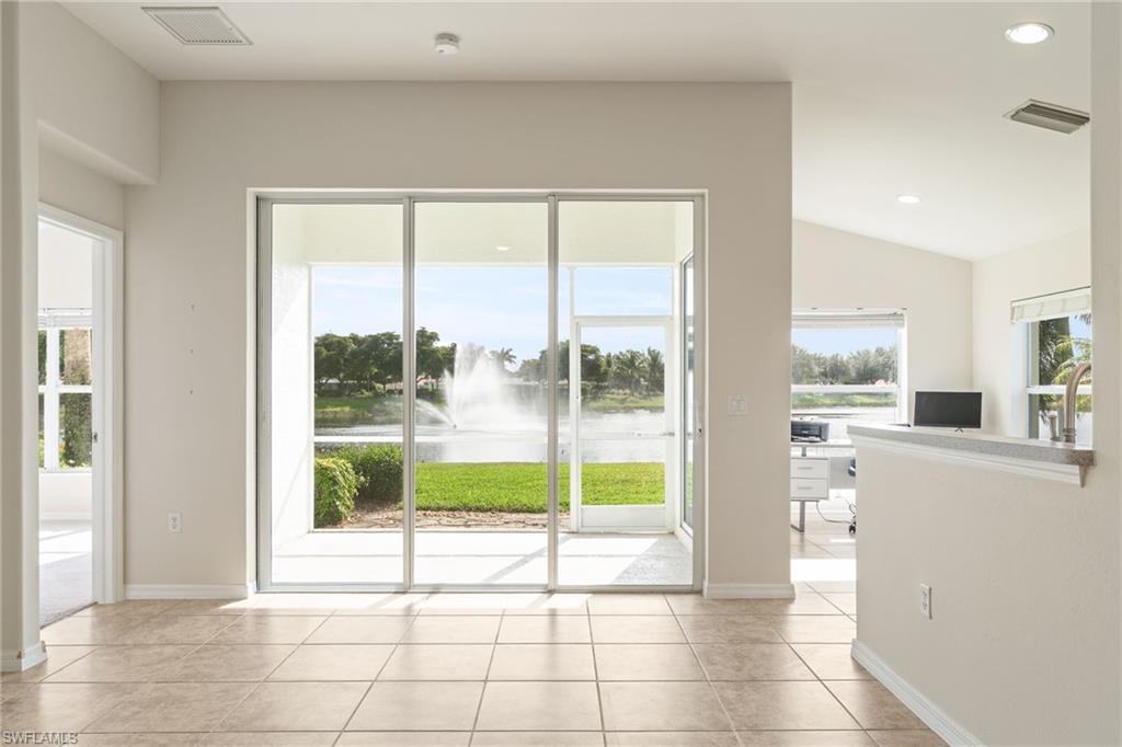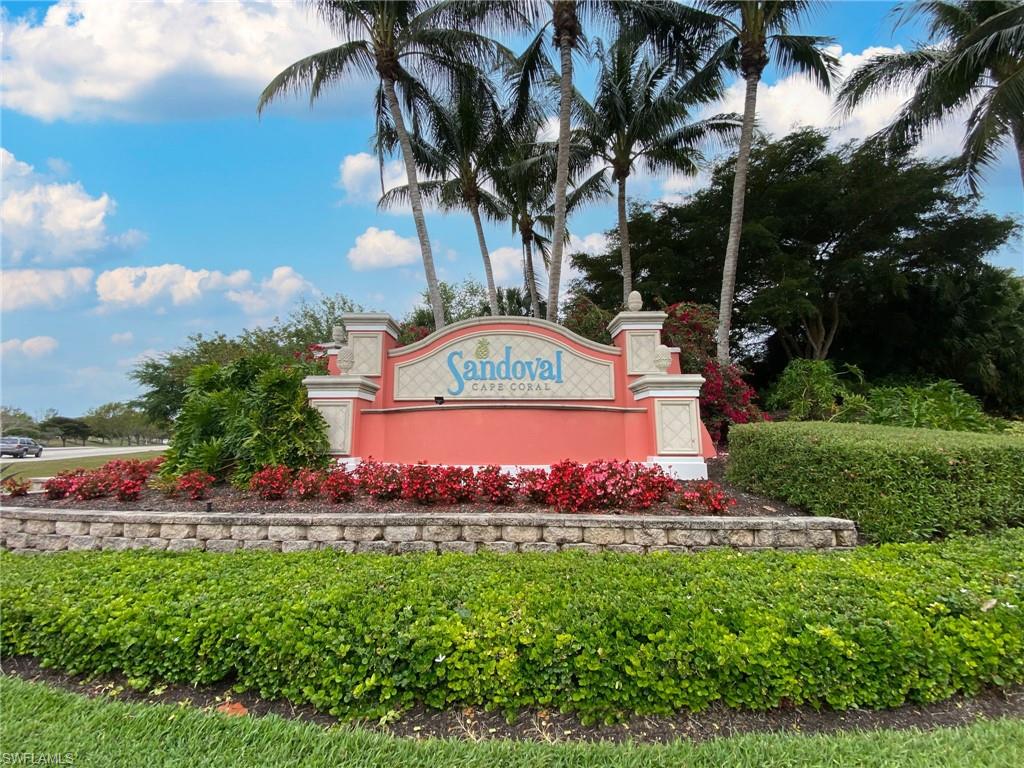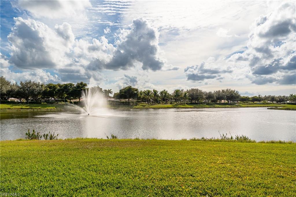 This stunning 3 bed 2 bath home is situated on one of Sandovalu2019s most desirable wide lakefront lots, offering an unparalleled waterfront LAKE FOUNTAIN view day and night. The property features a NEW ROOF, a newer air conditioning system, newly sealed pavers, extra storage above garage, exterior painted 2023- providing both comfort and modern amenities. The home boasts a bright and clean interior with superior location and sunny SOUTHERN exposure that are irreplaceable. Great neighbors and a serene environment! There are no other homes on the opposite side of the lake, only lush trees, lawn, and abundant tropical birds, to enhance the tranquil setting. Included in the HOA fees are: lawn care, tree maintenance, mulch, insect control, weed control, trash, sewer and internet. The carpets have been professionally cleaned, ensuring a fresh and inviting atmosphere. Now for the amenities! With perfect proximity to them all on the many miles of shaded walking paths, Sandoval offers: Lagoon style pool with water slide, shaded playground, bocce ball, sand volleyball, tennis/pickleball courts, basketball court, fishing pier, disc golf, dog friendly parks and Community Center, with a variety of planned events and so much more! Additionally there is night time security and easy access to the home from Trafalgar Road Gate. Make your resort style living dreams come true with this beautifully maintained lake front home.