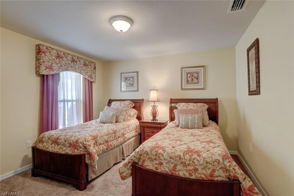 Outstanding SANDOVAL gated community TURNKEY 3/2 w/ 1715 sq' living and panoramic LAKE VIEWS from the main living areas, lanai and PRIMARY BEDROOM. A/C replaced July 2019. NEW refrigerator October 2025. Your dreams have come true! Owners pristine tastes in decor make this home highly desirable! Plush burgundy window treatments and color coordinated accent rugs throughout along w/ beautiful furnishings really create a warm Florida environment! Many memories created on your lanai overlooking the expansive Lake views! GREAT ROOM open floorplan to the kitchen w/ wood cabinets and a pantry and breakfast nook areas. FORMAL DINING area. ROOM for POOL! Enjoy the many amenities Sandoval has to offer, including the huge RESORT STYLE POOL and community center. Many activities to get connected with in Sandoval that you'll love including the workout room! Sandoval is located in popular southwest Cape Coral with quick access to everything!