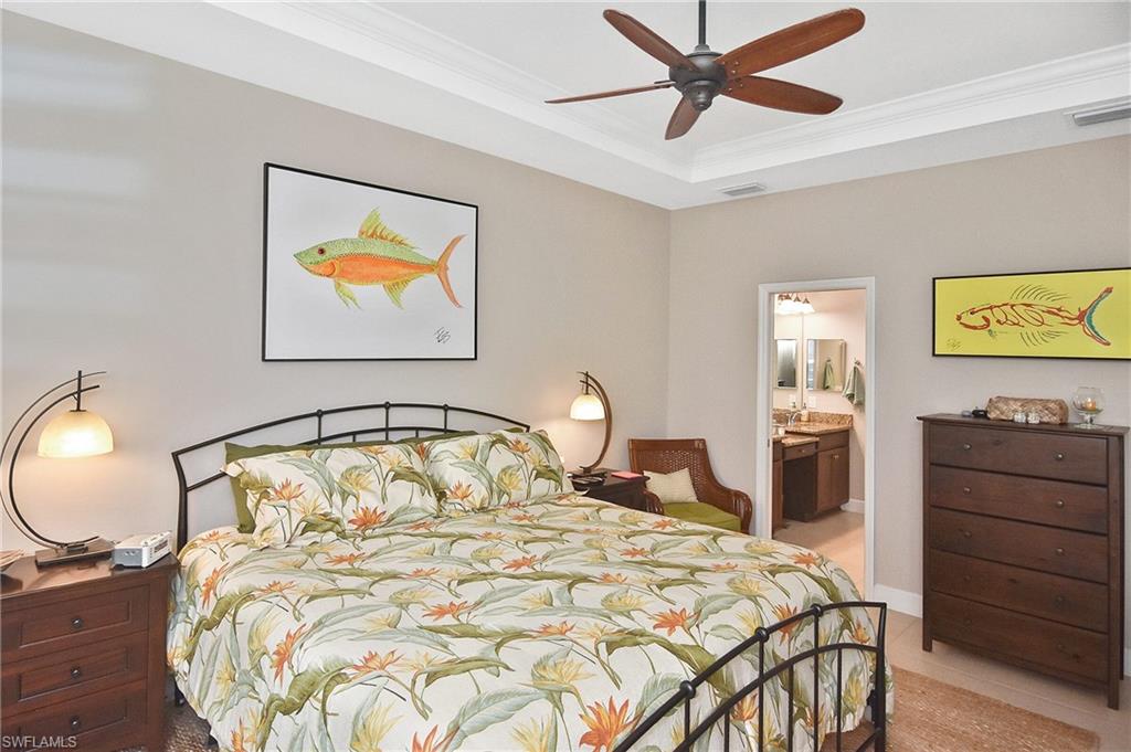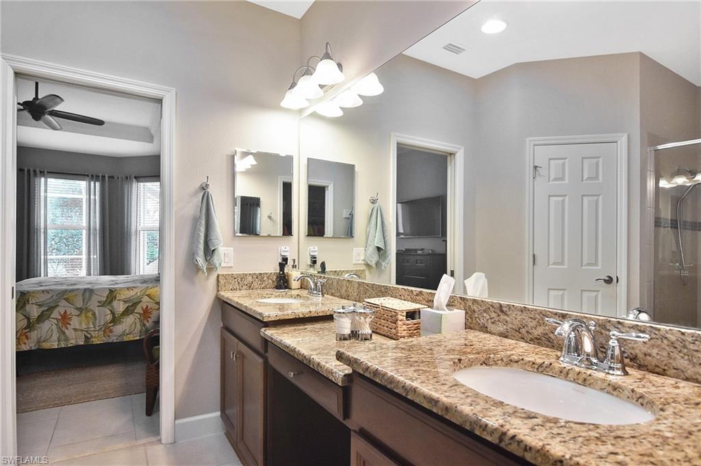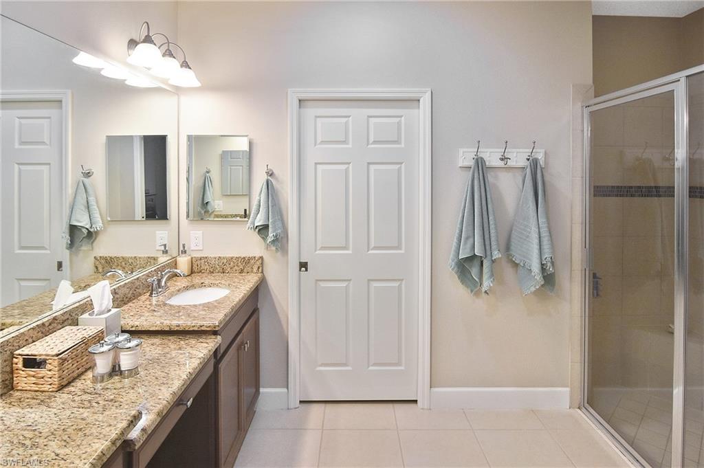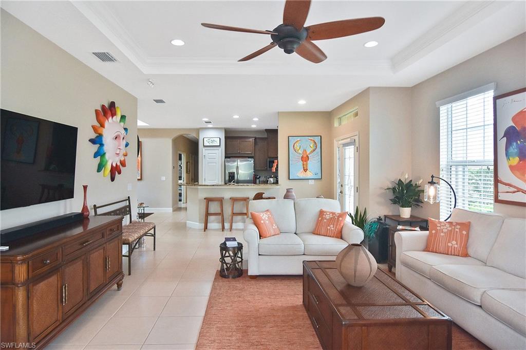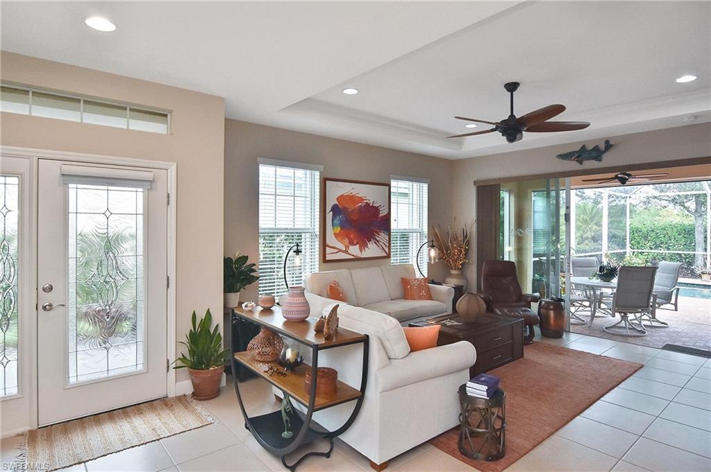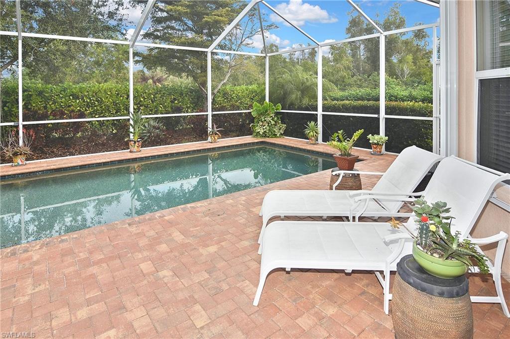 Welcome to this original-owner, meticulously maintained heated saltwater pool home ideally situated on a quiet cul-de-sac within the prestigious, resort-style community of Sandoval. This highly desirable Taylor Morrison Queen Palm floor plan is a 2 bed with a DEN large enough to be a bedroom and offers an exceptional blend of refined elegance, comfort, and functionality. The home has been thoughtfully upgraded to include a durable metal roof with a tile profile, with a 50-year transferable warranty, accordion hurricane shutters, an electric roll-down hurricane shutter on the expansive lanai, sealed pavers in both the front and rear, epoxy-coated garage flooring, 42` kitchen cabinetry, a decorative glass entry door, and a stunning PebbleTec heated saltwater pool. Inside, the open-concept design is enhanced by tray ceilings and abundant natural light, creating a bright and sophisticated living environment. The spacious living and dining areas flow seamlessly into the well-appointed kitchen featuring updated appliances, ideal for both everyday living and elegant entertaining. Tile flooring extends throughout the home, offering timeless style and effortless maintenance. The owneru2019s suite provides a serene private retreat with a generous walk-in closet, dual vanities, and an oversized walk-in shower designed for relaxation. Enjoy tranquil mornings and sunset evenings from the screened lanai overlooking the private pool, framed by lush, mature landscaping that enhances both privacy and curb appeal. This home is NOT in a Flood Zone for added peace of mind. Sandoval is renowned for its luxury lifestyle and unmatched amenities, including a resort-style pool, fishing pier, two dog parks, playground, bocce ball, pickleball, volleyball, basketball, and tennis courts. This exceptional, move-in-ready home offers the perfect opportunity to experience upscale Florida living at its finest.