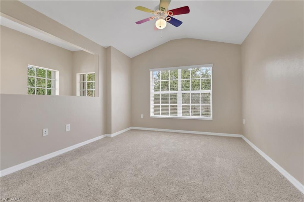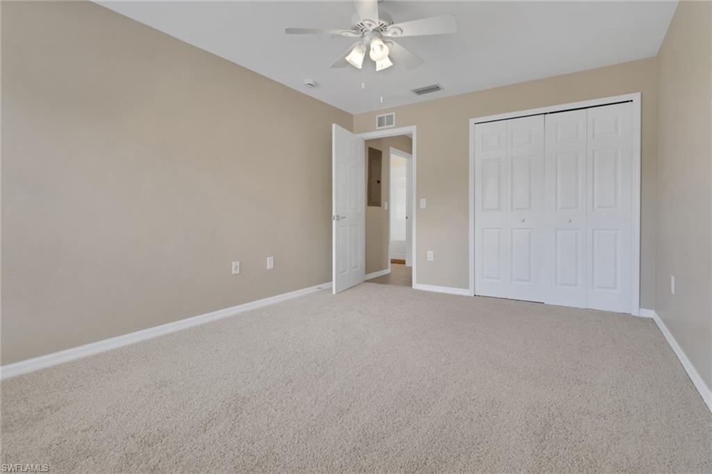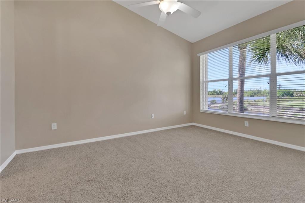 LOCATION, LOCATION! Rare opportunity to own the only end unit overlooking both the lake and pool. The Spoonbill model is the largest floor plan at 1,857 sq ft, configured as two bedrooms plus a den. Outstanding value at $161 per sq ft. Prime & highly sought after Southern exposure delivers bright mornings, natural light throughout the day, and cooler shaded evenings on the lanai.Brand NEW ROOF (April 2025), NEW hurricane impact windows throughout (November 2025), and metal accordion storm shutters (2023). Fresh interior and exterior paint (2025) including walls, ceilings, lanai, and garage. New plush carpet (2025). Updated systems and appliances include water heater (2024), washer and dryer (2024), stainless dishwasher (2024), and stainless refrigerator (2024). Cathedral ceilings, recessed lighting, and a light-filled open layout enhance the spacious feel. The kitchen offers abundant cabinetry, white appliances, and a convenient pass-through to the dining area. The oversized screened lanai showcases wide waterfront views, perfect for relaxing or entertaining.Split-bedroom plan for privacy. Bathrooms feature clean, neutral finishes with newer fixtures (2024). For additional peace of mind, premium upgrades (approx $50,000) in storm protection: $15,000 metal accordion shutters (2023), a $20,000 new tile roof (2025), with brand new hurricane impact windows ($15,000) just installed - November 2025. This location is truly primeu2014step outside to the pool, hot tub, and grill area visible from your living space and lanai. Residents also enjoy the option of two pools, including one exclusive to condo residents, complete with its own hot tub for added privacy and relaxation.Sandoval is one of Cape Coralu2019s most sought-after gated communities just outside the Veterans gate. Resort-style amenities include a heated community pool with water slide, pickleball, tennis, basketball, volleyball, two dog parks, playground, gym, clubhouse, fishing pier, and walking trails amid lush tropical landscaping. Move-in-ready, lakefront end unit with every major update complete. Schedule your showing today.PID#29-44-23-C3-402-0201