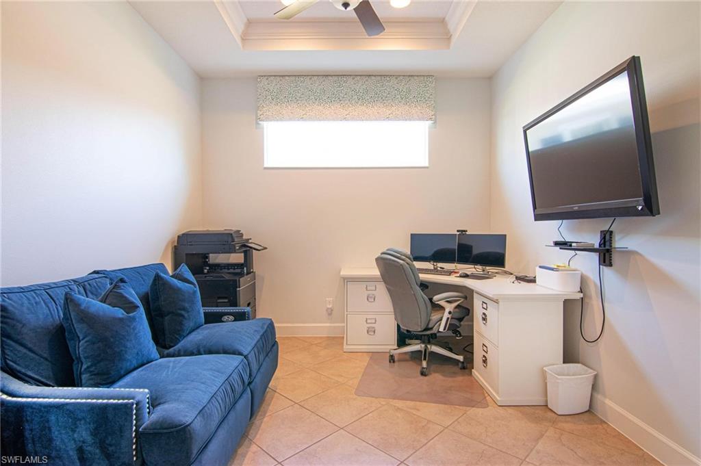 Welcome home to this beautifully maintained 3-bedroom plus den, 2-bath home offering a bright and open floor plan with volume ceilings and elegant tray details. Tile flooring flows throughout the main living areas. The spacious kitchen features granite countertops, stainless steel appliances, a pantry, and ample cabinetryu2014perfect for everyday living and entertaining. Step outside to the screened lanai overlooking mature landscaping, creating a peaceful outdoor retreat. The guest bathroom includes a dual-sink vanity, while the owneru2019s suite boasts a walk-in closet, dual-sink vanity, and a large walk-in shower. The versatile den can easily serve as a home office or optional fourth bedroom, adding flexibility to this thoughtfully designed home. Sandoval is known for its relaxed lifestyle living with plenty of activities for all ages! RESORT STYLE POOL, FISHING PIER, 2 DOG PARKS, KIDS PLAYGROUND, BOCCEBALL, VOLLEYBALL, BASKETBALL AND TENNIS COURTS just to name a few. Call today for your private showing and to own a piece of this paradise!