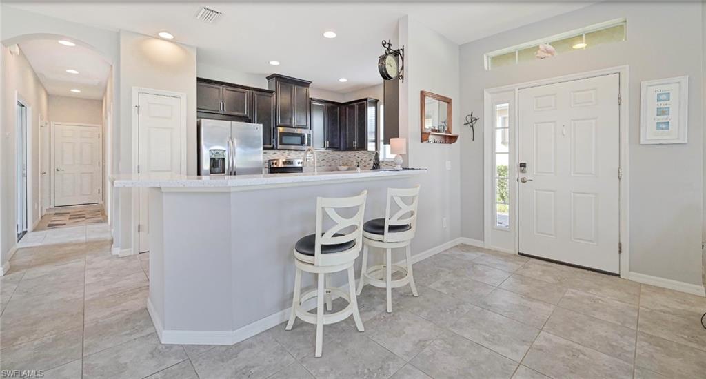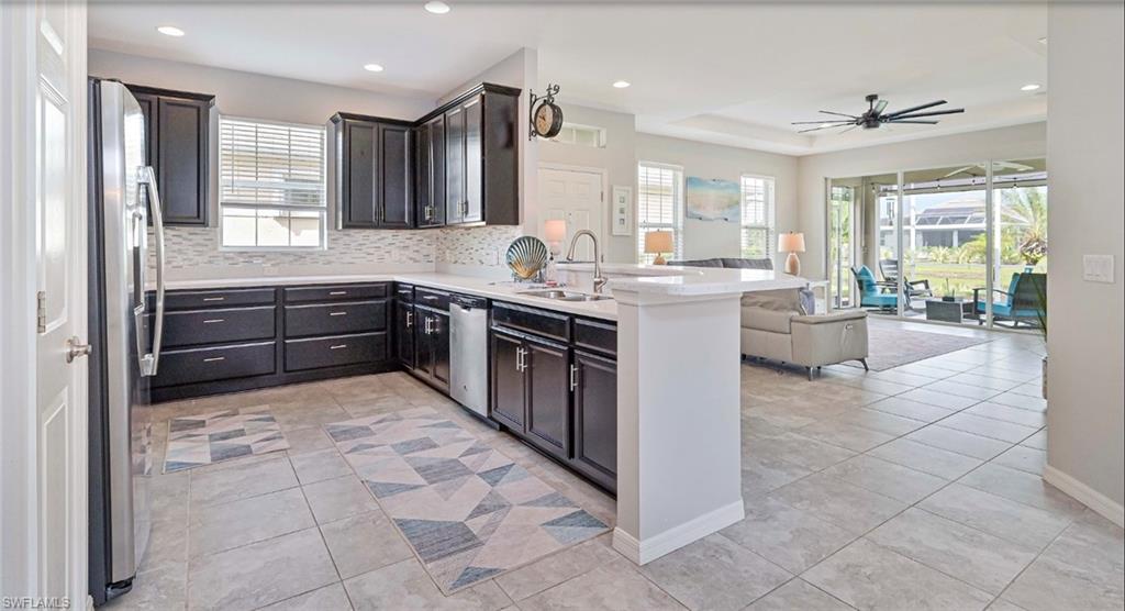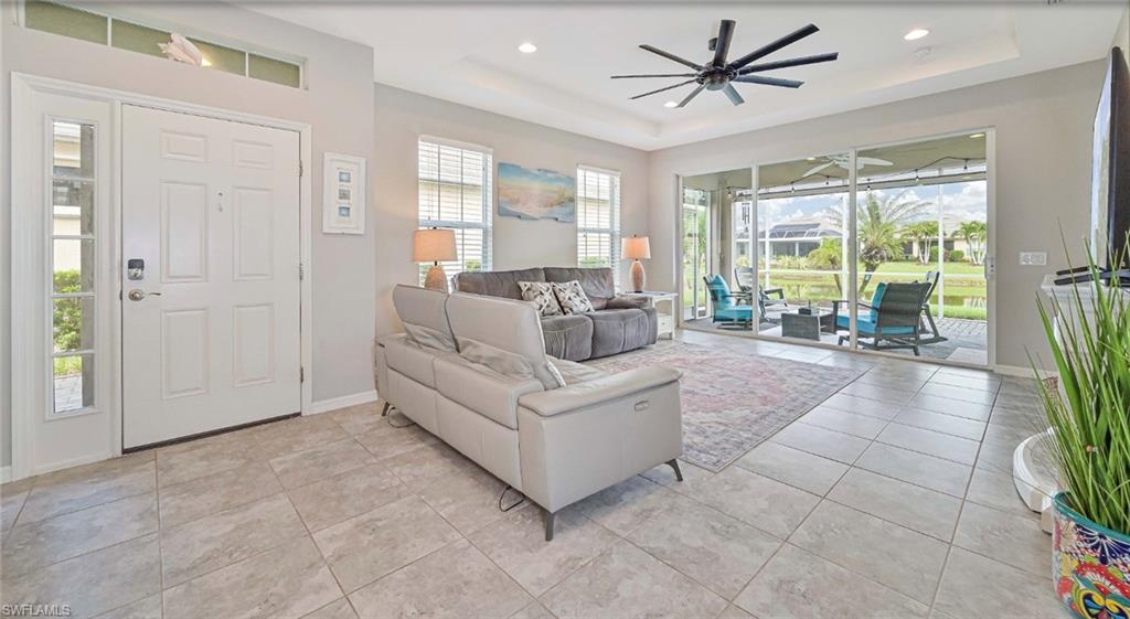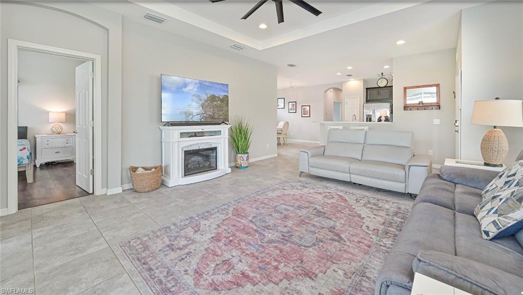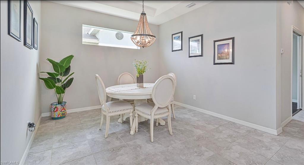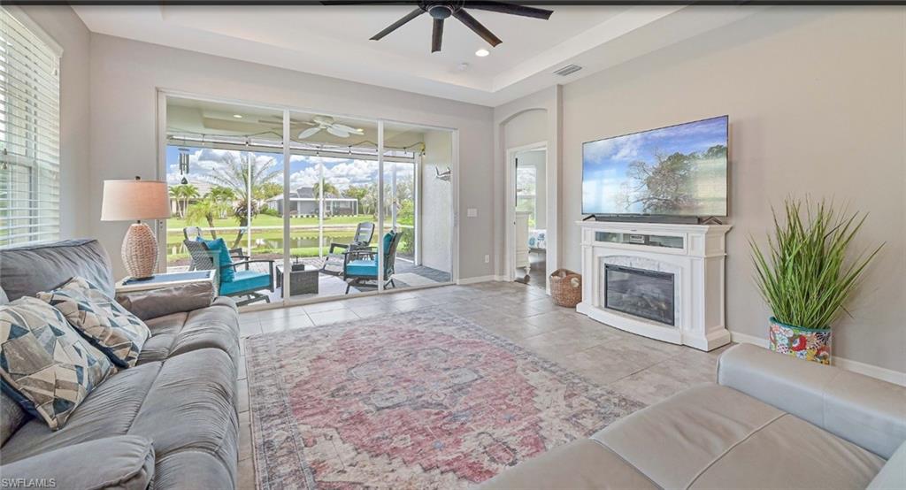 Welcome to your slice of paradise in the highly sought-after Sandoval community of Cape Coral! This beautifully maintained 2-bedroom + den, 2-bath home offers the perfect blend of comfort, modern upgrades, and serene water viewsu2014ideal for those seeking the Florida lifestyle in a resort-style setting.Step inside to a bright, open-concept floor plan with trey ceilings and elegant finishes throughout. The spacious great room flows effortlessly into the dining area and kitchen, creating a perfect space for entertaining or relaxing with family. Large sliders open to a screened lanai where you can enjoy tranquil lake views and breathtaking sunsets right from your backyard.The kitchen is a chefu2019s delight, featuring corian countertops, stainless steel appliances, 42` cabinetry, a pantry, and a large breakfast bar perfect for casual dining or morning coffee. The den offers flexibility as a home office, guest room, or hobby space, providing functionality for your lifestyle needs.The primary suite is your private retreat, complete with a walk-in closet, dual sinks, and a walk-in shower. Wake up each morning to peaceful water views just outside your window. The guest bedroom and second full bath provide comfort and privacy for family or visitors.Step outside to your extended screened lanai, where you can unwind while overlooking the wildlife and beautifully landscaped yard. Itu2019s the ideal spot for grilling, outdoor dining, or simply soaking in the Florida sunshine.Additional highlights include:Tile flooring in main living areasInterior laundry room with extra storageTwo-car garageLush tropical landscaping with irrigationElectric Hurricane shutter in the lanai for peace of mindResidents of Sandoval enjoy access to an impressive array of resort-style amenities, including a lagoon-style pool, fitness center, tennis and pickleball courts, clubhouse, dog park, walking paths, and more. This gated community is known for its pristine grounds, friendly atmosphere, and active lifestyle.Located just minutes from shopping, dining, and Cape Coralu2019s best beaches, this home combines luxury, convenience, and tranquility.Donu2019t miss the opportunity to make this water-view gem in Sandoval your new Florida home. Schedule your private showing today and start living the lifestyle youu2019ve always dreamed of!