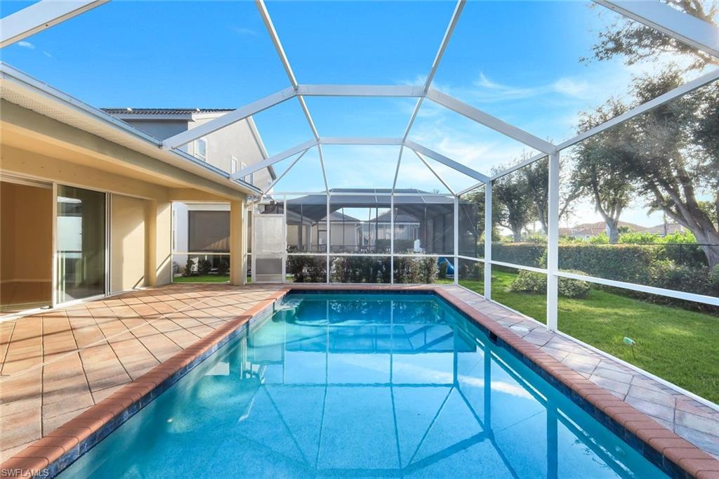 Welcome home to this beautifully maintained POOL home tucked inside the exclusive, gated SANDOVAL communityu2014one of Cape Coralu2019s most beloved neighborhoods for resort-style living and everyday convenience. With a NEW ROOF (May 2023) and a floor plan designed for comfort, entertaining, and effortless indooru2013outdoor living, this home checks every box. Step inside to a bright, open layout with soaring ceilings, neutral tile flooring, and a wall of sliding doors that frame peaceful views of the screened-in pool area. The spacious eat-in kitchen features granite countertops, breakfast bar seating, stainless steel appliances (2021), abundant custom wood cabinetry, and a walk-in pantryu2014perfect for the home chef who values both function and style. The Owneru2019s Suite is its own retreat with a tray ceiling, soft natural light from a large picture window, a generous walk-in closet, dual-sink vanity, relaxing soaking tub, and a tiled walk-in shower. Two additional guest rooms and a full bath offer privacy for family or visitors. The owners opened up the wall between guest bedrooms to create a larger flex spaceu2014this can easily be restored to two separate bedrooms upon request. Outside, your private backyard oasis awaits. The expansive screened lanai features a sparkling pool with plenty of deck space for lounging, grilling, or simply enjoying the Florida sunshine. Lush hedges along the rear provide excellent privacy. Additional upgrades include: new A/C (2022), new water heater (2022), new pool pump (2022), newer washer & dryer (2021), and epoxy-coated garage flooring. Located on a quiet cul-de-sac street, this home offers access to Sandovalu2019s unmatched amenities: a resort-style lagoon pool, clubhouse, fitness center, fishing pier, 2 dog parks, walking & biking paths, kids playground, bocce, volleyball, basketball, tennis, pickleball, shuffleboard, and a full calendar of community events and clubs. Experience the lifestyle that makes Sandoval one of Cape Coralu2019s most sought-after gated communities. Schedule your private tour todayu2014your Florida dream home is waiting.