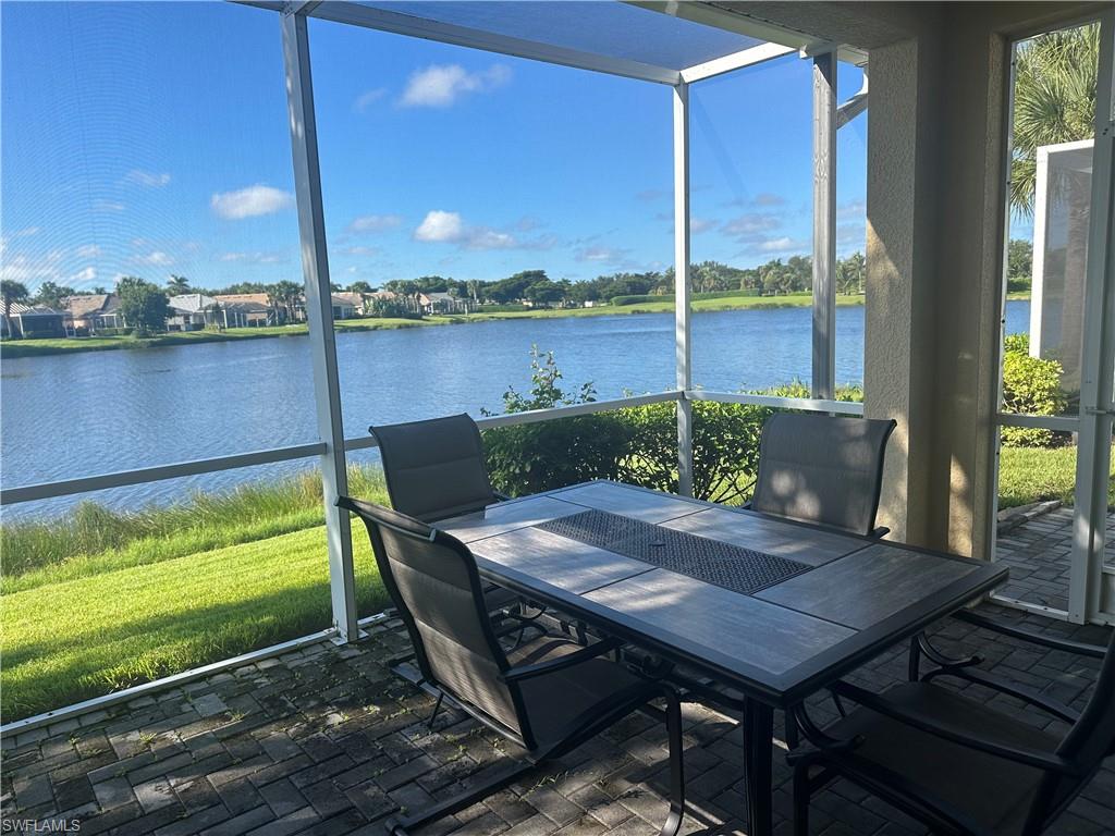 Available for November and December, this beautifully maintained 2-bedroom plus den (currently set up as a third bedroom) seasonal rental is offered turnkey and ready for your stay. Enjoy stunning lakefront views from the screened lanai, perfect for morning coffee or evening relaxation. The open floor plan features a large kitchen with plenty of workspace, tile flooring throughout the main living areas, and cozy carpeted bedrooms. The owneru2019s suite boasts a walk-in closet, dual sink vanity, and a spacious walk-in shower. If rented for December only, the rental rate is $3,800. This home combines comfort, convenience, and a serene lakefront setting for the perfect seasonal getaway. SANDOVAL has so much to offer; GATED, TENNIS, BASKETBALL, VOLLEYBALL, CLUBHOUSE W/FITNESS CENTER, DOG PARK, JOGGING TRAILS, RESORT STYLE HEATED POOL, KIDDIE AREAS, PICNIC AREAS, BOCCE BALL, & more!