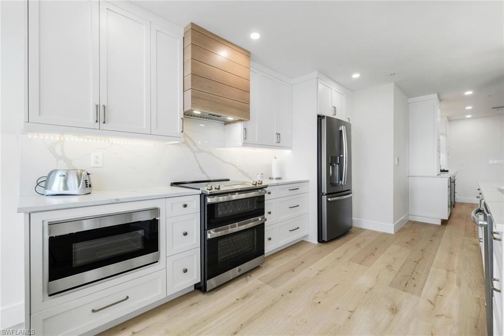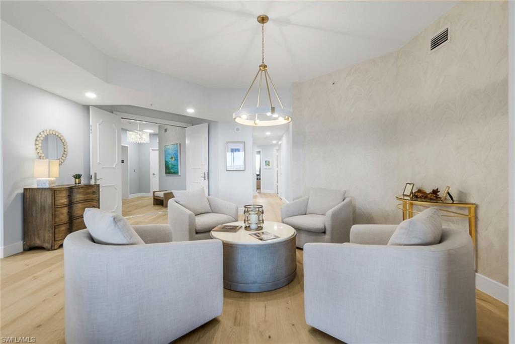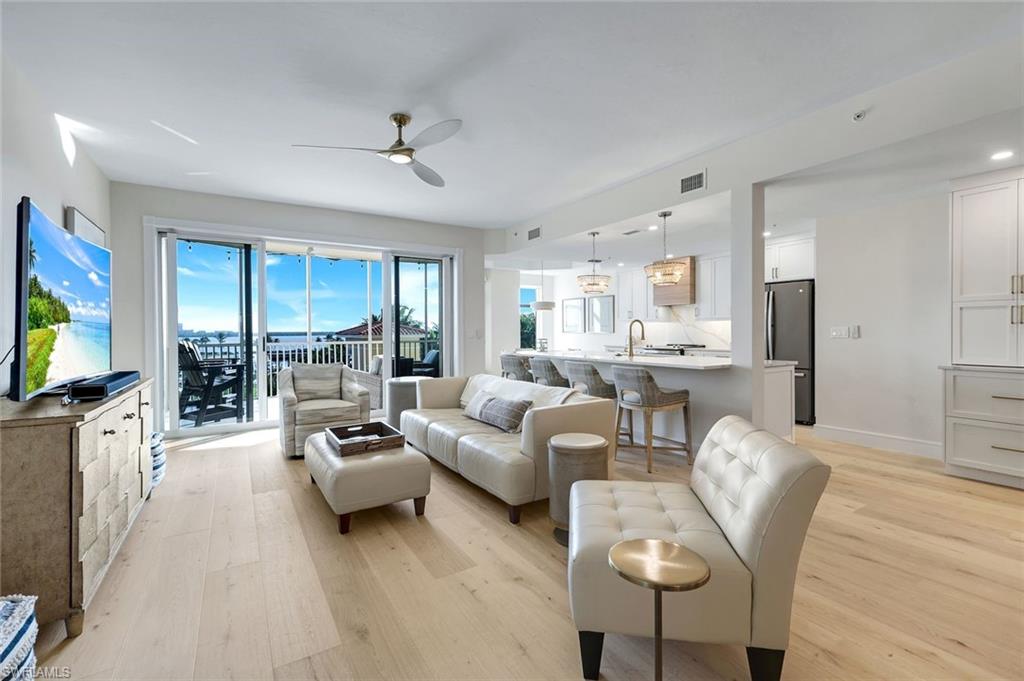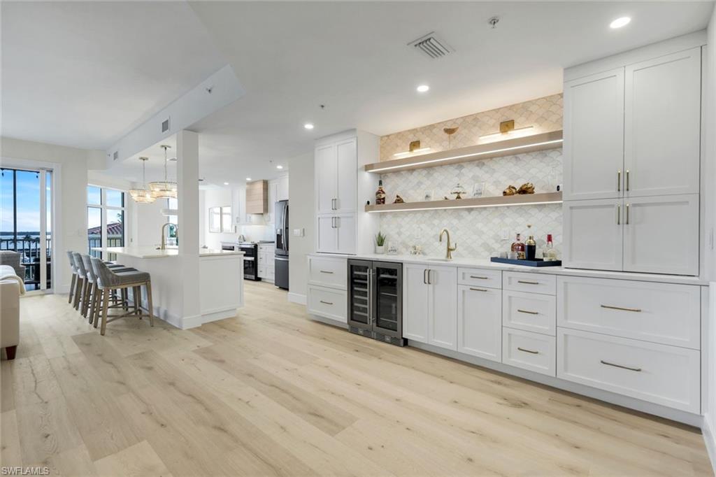 Experience luxury living in the highly sought-after Tarpon Point Marina. This beautifully remodeled 3-bedroom plus den residence offers just under 2,900 sq. ft. of light, bright, and airy living space complete with seemless luxury wood laminate flooring throughout for that coastal feel. Featuring three spacious bedroomsu2014including a generous primary suiteu2014along with three full bathrooms and a convenient half bath, this home is designed for both comfort and exceptional entertaining. A private elevator entrance welcomes you directly into your residence, offering privacy and convenience. The gourmet kitchen showcases quartz countertops, wood flooring, stainless steel appliances, a custom hood, cabinet-style microwave, double oven, and extensive custom cabinetry with a built-in pantry. A separate wet bar/coffee station enhances the space with a tile backsplash, custom lit open shelving, and a wine cooler. All bathrooms have been tastefully updated, and every room features new custom lighting. Enjoy two private balconiesu2014one ideal for sunrises and the other capturing unforgettable sunsets. The rear balcony offers unobstructed river views that truly set this residence apart. Additional highlights include a private 2-car garage, providing rare convenience in condo living. Tarpon Point Marina delivers an unmatched resort-style lifestyle with multiple pools and hot tubs, restaurants, boutique shops, fitness facilities, a full-service marina with boat rentals, tennis courts, and more. A modernized, move-in-ready residence in one of Cape Coralu2019s most coveted waterfront communities.