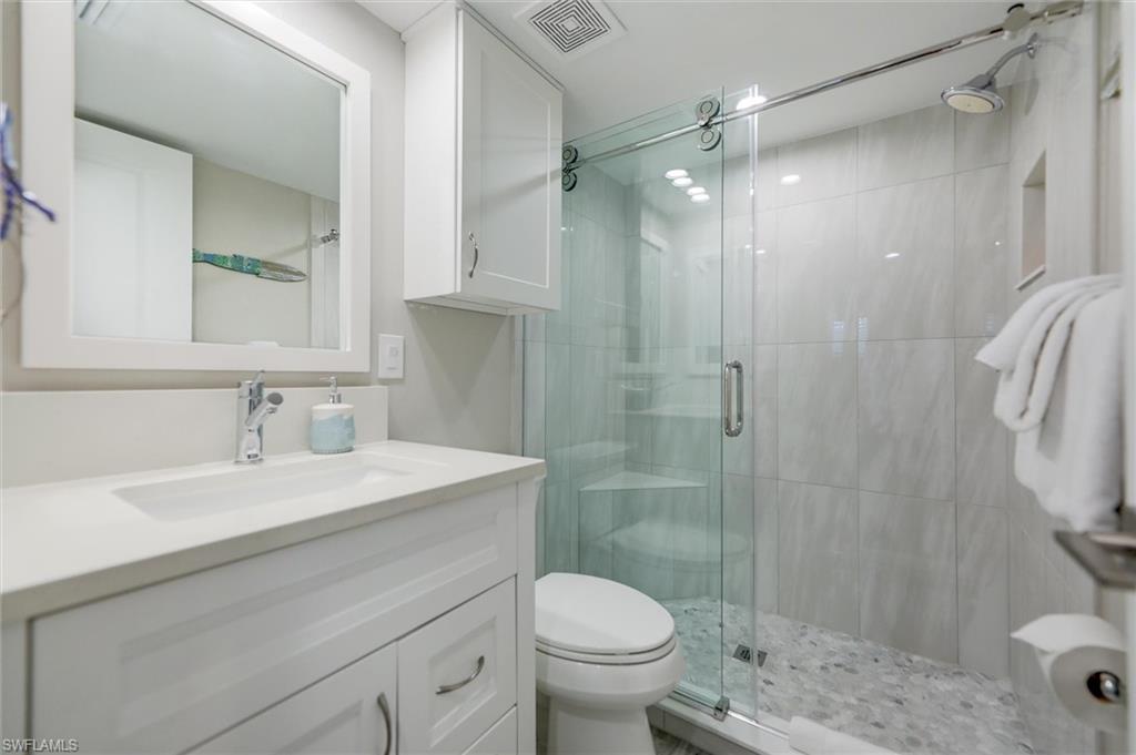 Welcome to 1403 Beach Cottage! A coastal inspired and completely renovated, turnkey 2 bedroom / 2 bath condominium with breathtaking beach views and stunning sunsets. Embrace the extraordinary at Beach Cottages located inside the reimaged South Seas Resort. The association has recently completed a transformation of the common areas including resurfacing of the pool and new patio furniture, expansion of the pool deck and addition of lush tropical landscaping, new roofs, installation of exterior Hardie siding, replacement of all staircases and railings, updating the tennis court and adding pickle ball, and all new lanais. You'll love the improvements to the interior including the 2 new bathrooms, smartly designed custom kitchen with quartz countertops and GE Profile appliances, functional laundry room with an owner's closet, new hot water heater, current plumbing system, wind resistant impact windows and bi-fold sliding glass doors, cozy plantation shutters, LED recessed lighting, outside shower and an underneath the building storage shed complete with shelving, a full sized refrigerator w/ icemaker, beach chairs, umbrella, rafts and toys. The condo has gorgeous beach and sunset views from the screened lanai which allow for use to sit and take in the beautiful views of the Gulf as well as a ground level private paver patio which has an outdoor shower and foot wash station. The condo is a short walk to the Village of Captiva with themed restaurants and cute shops. Excellent rental income history. Unlimited owner usage in South Seas rental management program. Life is Better at the Beach! Please call for your private showing.