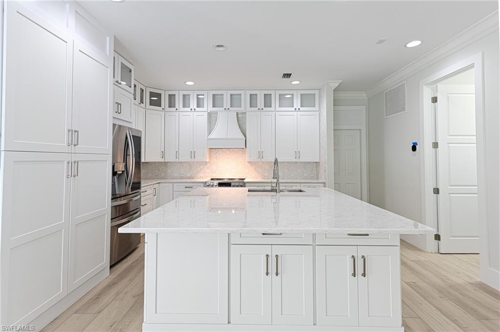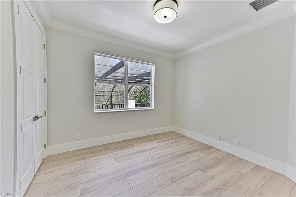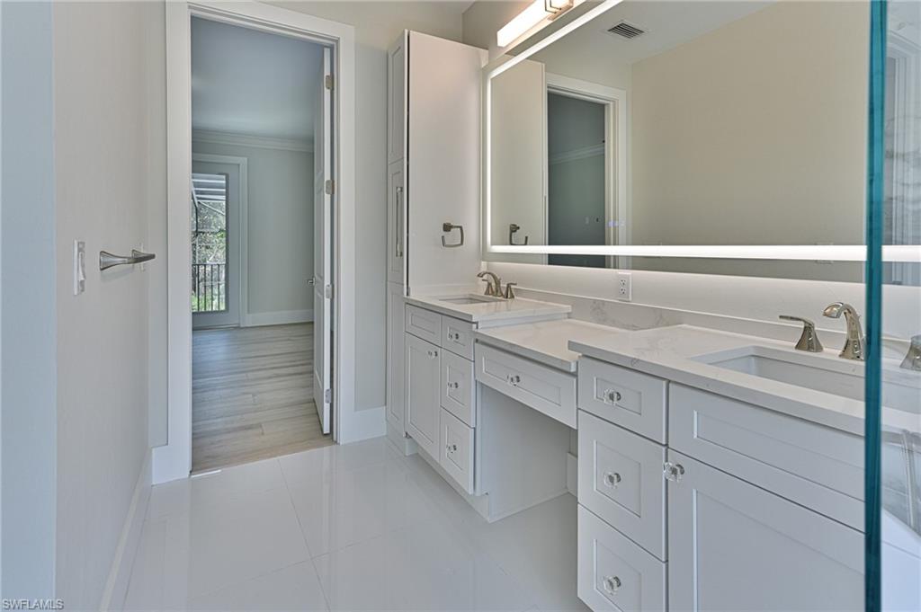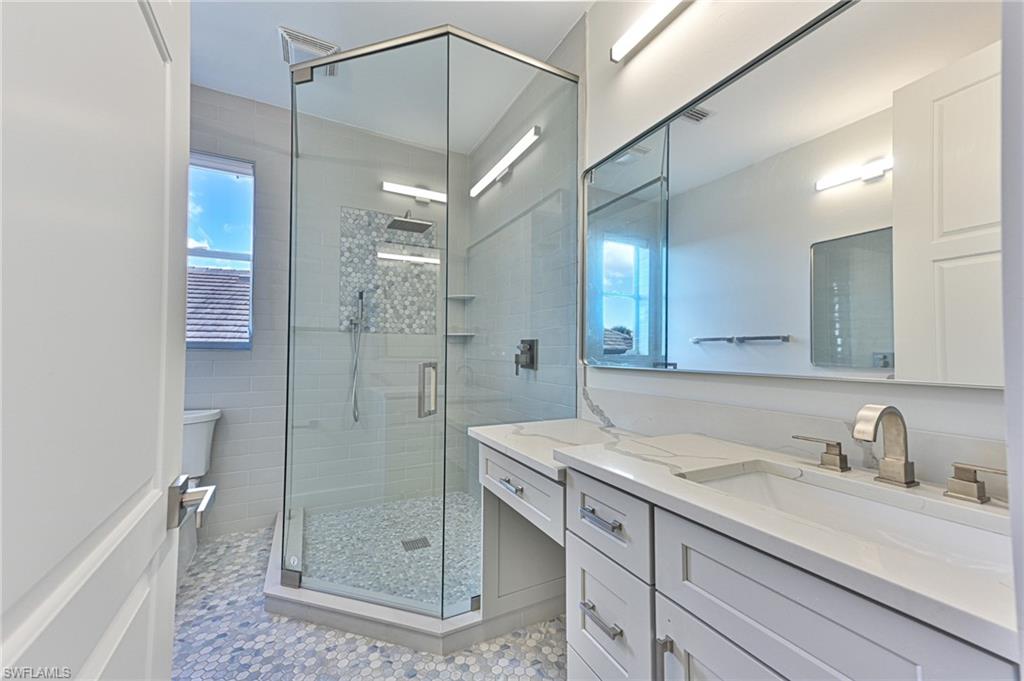This Riverfront home in the gated community of the Estates of Estero River offers it all: a reimagined and renovated open floor plan with 3,168 AC space and 5,023 total living space that is finished in a light coastal style with 5 bedrooms, 4 baths + den/office and a 3 car garage, an outdoor lanai with 2 story screened in tropical pool & spa, summer kitchen with gas grill, refrigerator, fireplace with TV provisions above, pool bath and all with one of the most private riverfront nature settings imaginable featuring mature privacy hedges, live oaks, palm trees and beautiful Bamboo island across the river, and maybe best of all is its convenient location to everything - shopping, dining, entertainment, golf plus the opportunity to kayak or row boat with electric motor down the Estero river to the beautiful Estero Bay. The all new kitchen with large sit at island is open to the dining area, living room, large family room and the lanai & pool. It offers all new appliances including glass door counter depth refrigerator, microwave drawer, cabinetry to the ceiling, quartzite countertops and marble backsplash. The large laundry is conveniently located off the kitchen as is the 3 car garage with a tiled floor. The powder bath has a tiled wall, custom vanity, lighted mirror and is located off the family room. The master bedroom suite features a private deck overlooking the pool, spa and the private riverfront nature. The master bath features his and her sink cabinetry + her sit at vanity and a 80u201d lighted mirror. The wall to wall glass shower features the soaking tub in the shower stall with floor to ceiling porcelain tile. The large master closet is complete with custom cabinetry and a full length lighted mirror. The two bedrooms with Jack and Jill bath features a custom cabinet built in closet with sit at desk in each room and a beautiful bath convenient to both. The oversized VIP bedroom features access to outdoor deck, large closet with built-ins and a luxury bath with separate his and her sink areas plus her sit at vanity. The fifth bedroom has a large window wall over looking the deck and private back yard. The quality of the finishes and selections are well above those for a typical house in this price range and include: millwork including 10u201d base moldings, crown moldings, ship lap and tongue & groove, solid doors, new flooring throughout, new paint, new light fixtures, new plumbing fixtures, new hardware, blinds/shades and more. Why live east of 75 when you can have everything you could want in a home and be close to everything. HOA fees are low, too. This is a one Owner property that was purchased from the Developer (he was originally going to keep for himself).