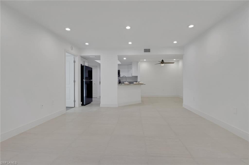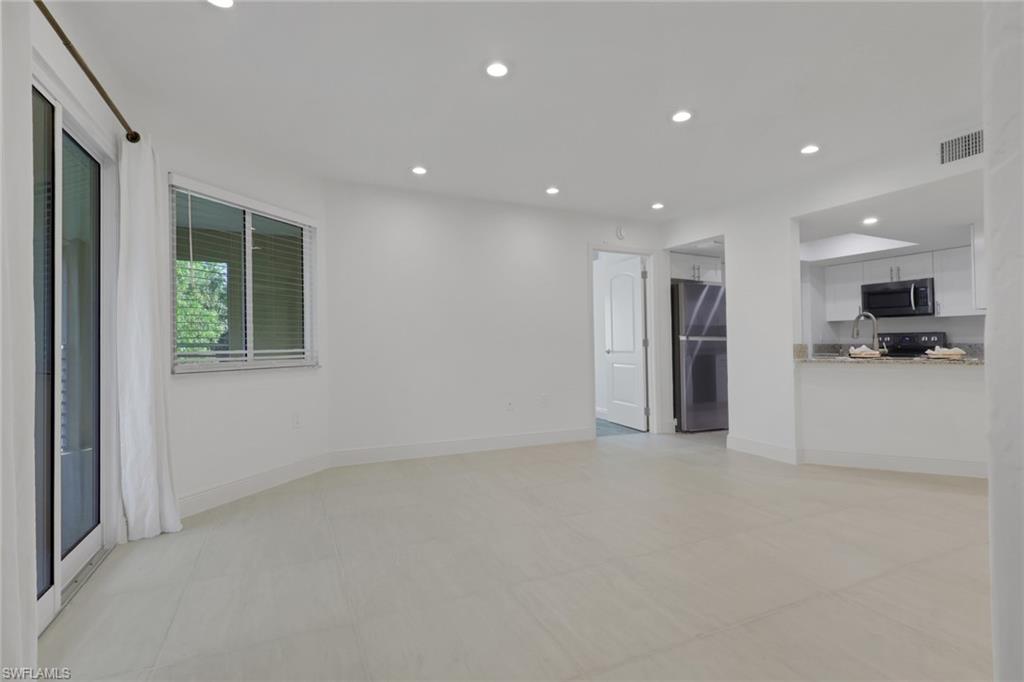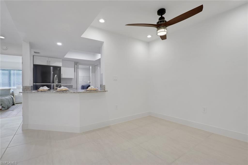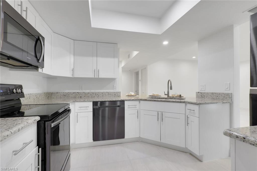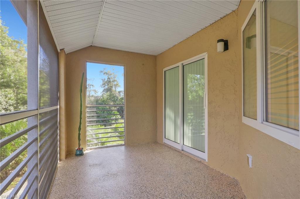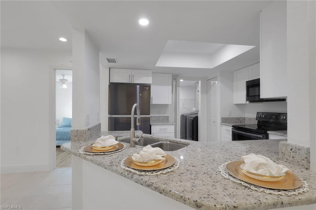 Completely updated 2 bedroom 2 bathroom condo in the conveniently located community the greens within fountain lakes. Screened in balcony overlooking a wooded area gives it a tranquil and private feel. Laundry room inside the unit right off of the kitchen with black stainless steel Samsung washer and dryer. A big plus and very little units have this feature are the brand new hurricane impact windows and sliders in the unit, huge update. Spacious with breakfast island, white shaker cabinets, granite counters and black stainless steel samsung appliances. Unit was recently painted and grout renewed throughout tile flooring. Both bathrooms have been updated with main bathroom offering a single vanity with walk in shower, and guest bathroom a shower tub combo with single vanity. Plumbing has been replaced to new standards. The greens at fountain lakes offers its own private pool area which is very close to this unit as well as tennis. The main club area at fountain lakes features a 9 hole golf course included in your hoa fees, as well as fitness room, another main club pool, pickle ball, tennis, basket ball, playground, grill area, shuffle board and bocce ball. Close to shops, restaurants, short commute to the airport and of course all the sandy beaches of SWFL