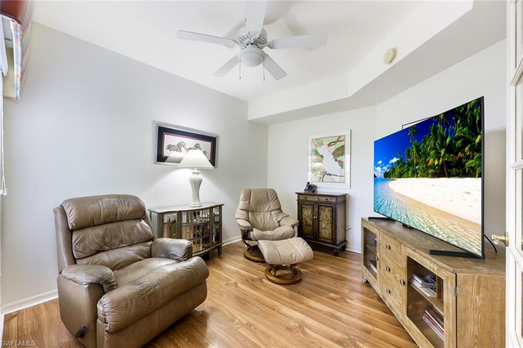 First-Floor Coach Home! Step into this whimsical, sun-filled coach home and instantly feel like youu2019re on vacation every day! Offered partially furnished, this charming 3-bedroom, 2-bath residence with a 1-car garage is perfect as a full-time retreat or your seasonal escape. Neutral tile flows through the entry, kitchen, and baths, while wood-look luxury vinyl plank flooring creates a warm, inviting foundation in the living areas and bedrooms. The spacious primary suite offers private access to the screened lanai and features an ensuite bath with dual vanities and a large walk-in shower. The kitchen is a showstopper with a subway tile backsplash, granite countertops, updated soft close white cabinetry, and stainless steel appliances, the perfect blend of style and function. Both guest bedrooms offer wonderful flexibility: one features a built-in desk and Murphy bed, while the front flex room easily transforms into a guest room, office, media room, or hobby space. Step out onto the IMPACT glass enclosed lanai and relax with peaceful lake views, breezy SWFL evenings, and the soothing sound of the water feature. This home provides peace of mind as it is equipped with Impact resistant windows and sliding glass doors, additionally the community replaced all roofs with durable Stone Coated Steel roofing in 2020. This is Resort-Style Living at Its Best! Lighthouse Bay is packed with premium amenities, including five pools (one a lap pool), 2.5 miles of walking/jogging paths, active bocce and pickleball programs, professional tennis courts, a fitness center, sauna, clubhouse, library, and an Arts & Learning Center.With The Brooks Commons Club Membership, you'll also have exclusive access to a private restaurant, enrichment center, social events, and more. This is Prime Location Just minutes to Coconut Point Mall, world-class dining, entertainment, Southwest Florida International Airport, and pristine Gulf beachesu2014this villa puts the best of SWFL right at your fingertips.