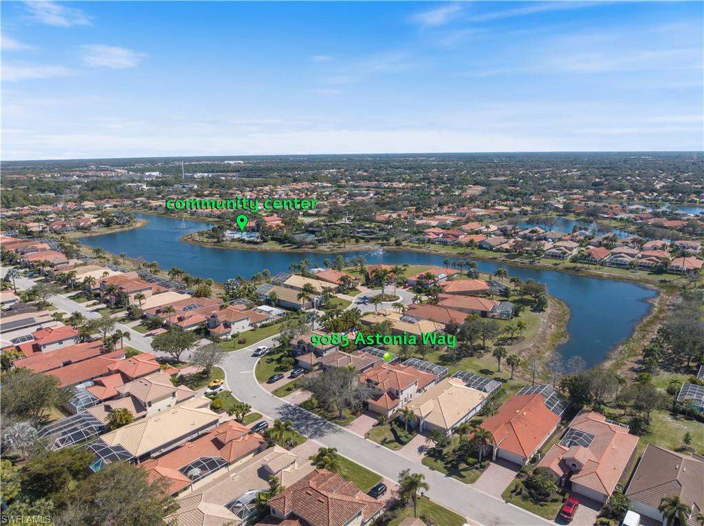Welcome to 9085 Astonia Way, Stunning LONG LAKE VIEW, PRIVATE POOL AND SPA, PRIMARY SUITE ON MAIN FLOOR, LOW HOA FEES. 4-bedroom, 3.5-bath pool home offering over 2,700 sq. ft. of beautifully designed living space in the highly sought-after gated community of The Reserve at Estero. Perfectly positioned on a private lot with peaceful lake views, this residence combines ideal functionality with inviting indooru2013outdoor Florida living.Step inside to a bright, open layout featuring a spacious great room, formal dining area, and an oversized kitchen with abundant cabinetryu2014perfect for cooking, hosting, and gathering. The primary suite is conveniently located on the first floor, offering extra privacy with generous closet space and a well-appointed ensuite bath.Upstairs, youu2019ll find three additional guest bedrooms, two full bathrooms, and a large loft/bonus areau2014ideal for a second living space, home office, playroom, or fitness area.Enjoy year-round relaxation on the extended screened lanai overlooking your private pool and serene water views. Whether youu2019re hosting family and friends or unwinding after a long day, the outdoor space is truly a retreat.Residents of The Reserve at Estero enjoy access to a renovated clubhouse, fitness center, community room, resort-style pool, tennis, pickleball, childrenu2019s play area, and a full calendar of neighborhood activitiesu2014all with low HOA fees and an unbeatable location just minutes to Coconut Point, FGCU, Hertz Arena, RSW Airport, and world-class beaches.This is the perfect blend of comfort, lifestyle, and prime Estero living. Your next home awaits at 9085 Astonia Way.