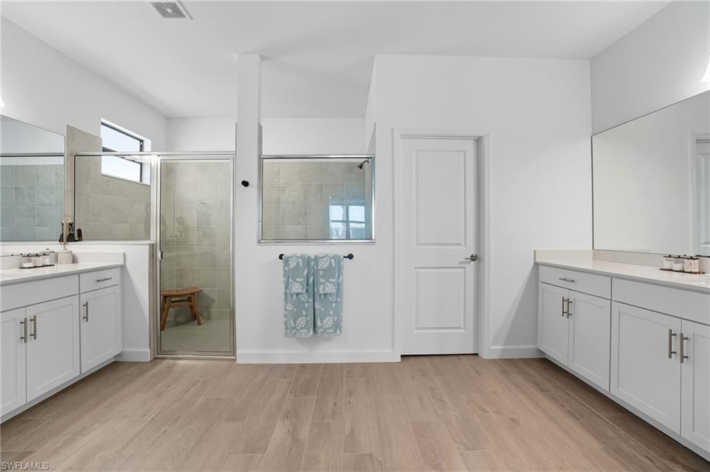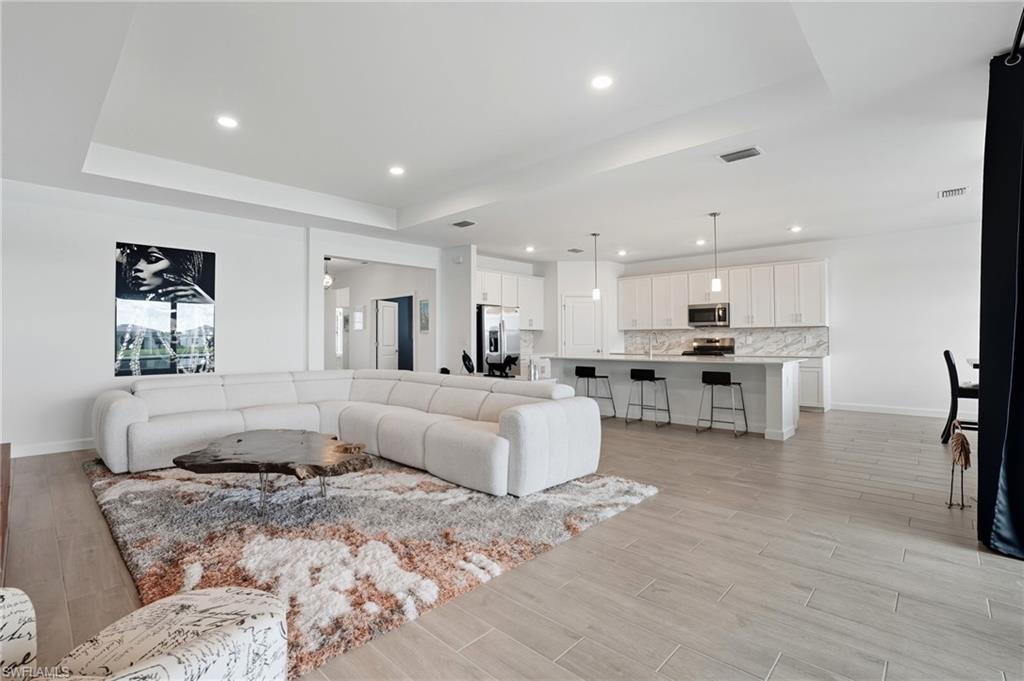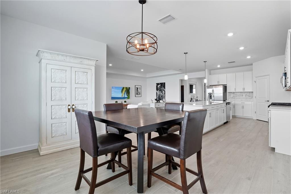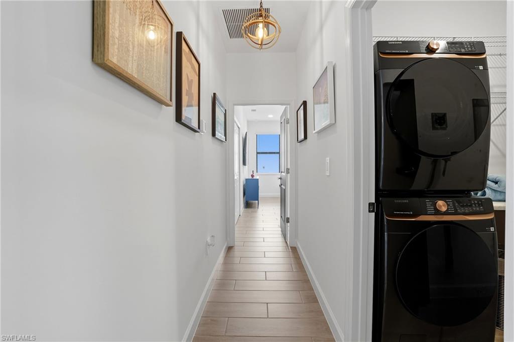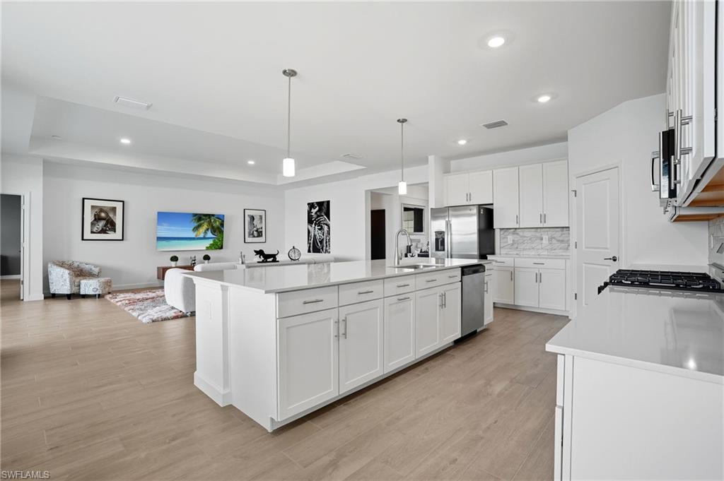Stunning lakefront Summerville floor plan in Verdana Village featuring 3 bedrooms plus den, 3 full bathrooms, and a spacious 3-car garage. This open-concept home welcomes you with elegant double glass door entry and offers breathtaking western sunset views over one of the largest lakes in the community. Inside, you'll find thoughtful upgrades throughout, including a full gutter system around the entire roof, sealed driveway and lanai with two coats of paver seal, and custom built-in shelving in the primary closets. The laundry room is fully upgraded with a Samsung stacked washer and dryer, utility sink, countertop, and added shelving for storage. Recessed lighting with dimmer switches enhances the ambiance in all bedrooms and the living room, while wall outlets are pre-wired for mounted TVs in each bedroom and the main living area. The kitchen features a stylish backsplash, and the lanai includes a ceiling fan for added comfort. The garage is finished with epoxy flooring and wall-mounted shelving for optimal organization. This home is located in a natural gas community and includes a gas stove and oven as well as an on-demand tankless hot water heater for energy-efficient living.Living in Verdana Village means access to unmatched amenities for every lifestyle. Enjoy 4 indoor and 14 outdoor pickleball courts, 2 indoor and 6 outdoor tennis courts, and indoor sports facilities designed for players of all levels. Stay active in the state-of-the-art fitness center or unwind at the resort-style pool and poolside bar. On-site dining is available at the Drift Restaurant & Craft Lounge. The community also features a kidu2019s playground, dog park, and convenient golf cart access to nearby retail including Publix, Dunkinu2019, UPS Store, Fifth Third Bank, and New York Pizza & Pasta. All of this, just a short drive from Southwest Floridau2019s finest beaches, shopping, dining, and RSW International Airport. This is your opportunity to enjoy the Florida lifestyle in a move-in ready, beautifully upgraded home where every day feels like a vacation. Schedule your private showing today!