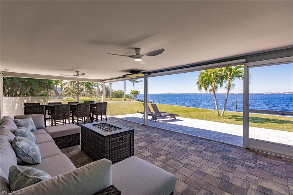 RIVERFRONT! Rents for around $4,000 a WEEK! Everything has been thoughtfully renovated with no expense spared. New metal roof, floors, hurricane impact windows/doors/garage, gourmet kitchen, bathrooms, bedrooms, pavers on patio and driveway, a/c, ductwork/insulationu2026 EVERYTHING has been fully transformed to create an absolutely stunning home with amazing water views in every room.Pull into the extra-long driveway with mature landscaping on this oversized lot with 140+ ft of seawall. Walk in and be stunned by the panoramic RIVER VIEWS OVER A MILE LONG. The open floor plan makes this home feel spacious and with over 1,000 sq ft in patio space, you can host large gatherings or make this your private oasis.The large patio offers electric outdoor blinds, a tv that drops down from the ceiling, an outside bar, multiple fire pits, and plenty of seating to fully enjoy the waterfront lifestyle. The gourmet kitchen is a culinary masterpiece offering a massive quartz island, high-end appliances, 36-inch farmhouse sink, built-in beverage/wine fridge, and a custom hutch/bar.With its NW exposure, enjoy amazing sunsets every night, from every room. Too many updates to list. NOT in VE flood zone for low insurance cost.