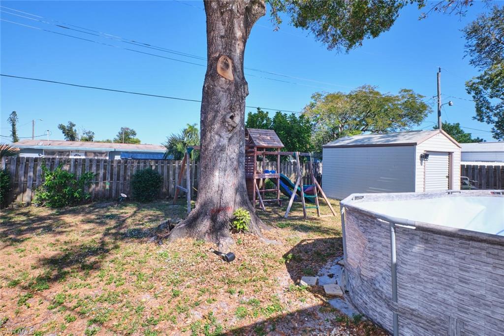 Charming 3-Bedroom + Den Home with Pool & Great Location!Welcome home to this beautifully maintained single-family residence offering 3 spacious bedrooms plus a versatile den and 2 updated bathrooms. The home features a bright, open layout with newer kitchen cabinets, tile and laminate flooring throughout, and plenty of natural light.Enjoy outdoor living at its best with a large screened lanai, screened front porch, and a fully fenced backyard complete with an above-ground pool and a large storage shed. The metal roof provides peace of mind, and the 2-car garage includes a convenient laundry area.Nestled on a quiet street just minutes from shopping, dining, and only 6 miles from the interstate u2014 this home offers both comfort and convenience!