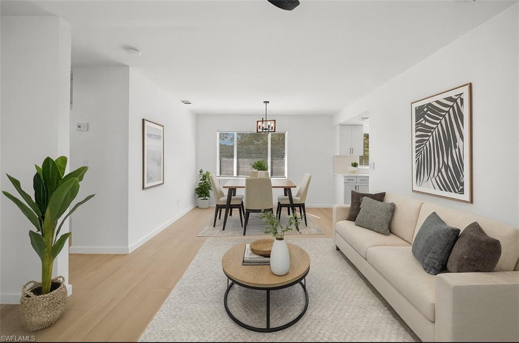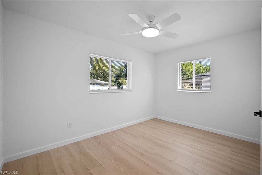 NEVER FLOODED! This home is a SHOWSTOPPER! Completely renovated 3-bedroom, 1-bath home with attached 1-car garage and spacious fenced in backyard perfect for kids and pets! Features newer roof (2021) and newer hot water heater, fresh interior and exterior paint, NEW LVP flooring, NEW modern light fixtures and ceiling fans, NEW black hardware, and window coverings throughout. Updated Kitchen offers stainless steel appliances, quartz countertops with tasteful white subway tile backsplash & stunning gold hardware. Fresh landscaping adds to the eye catching modern exterior. Conveniently located near Fort Myers Shores Nature Trail, Community park, Davis Community boat ramp, two Publix plazas, & with easy access to I-75 just 5 miles away itu2019s an easy commute to work or RSW. Fully transferable flood insurance.