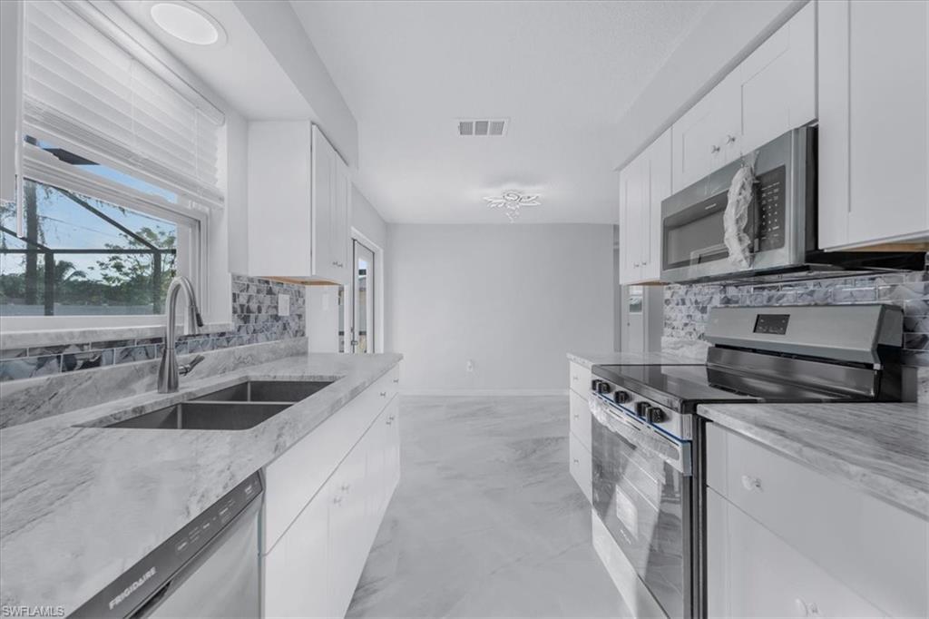 This property is located in one of the best and most popular areas of Fort Myers. Completely renovated, it features new impact doors and windows, beautiful new tile flooring, new kitchen cabinets with granite countertops, and beautiful, renovated bathrooms in both the master and guest rooms. This property boasts the most spacious patio and a beautiful, large swimming pool for the full enjoyment of family and friends.Hurry and call to schedule a viewing. This could be the dream property you've been searching for.