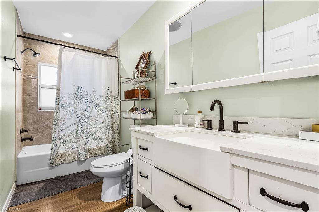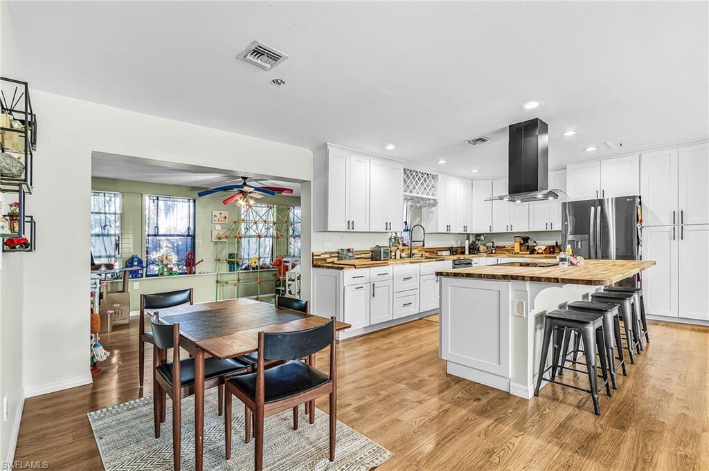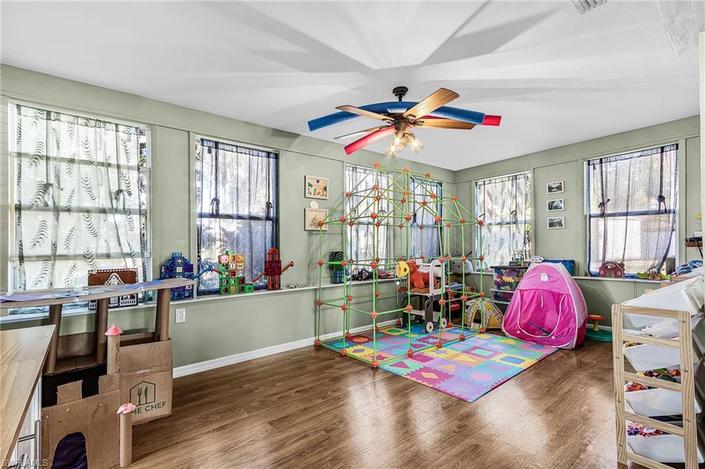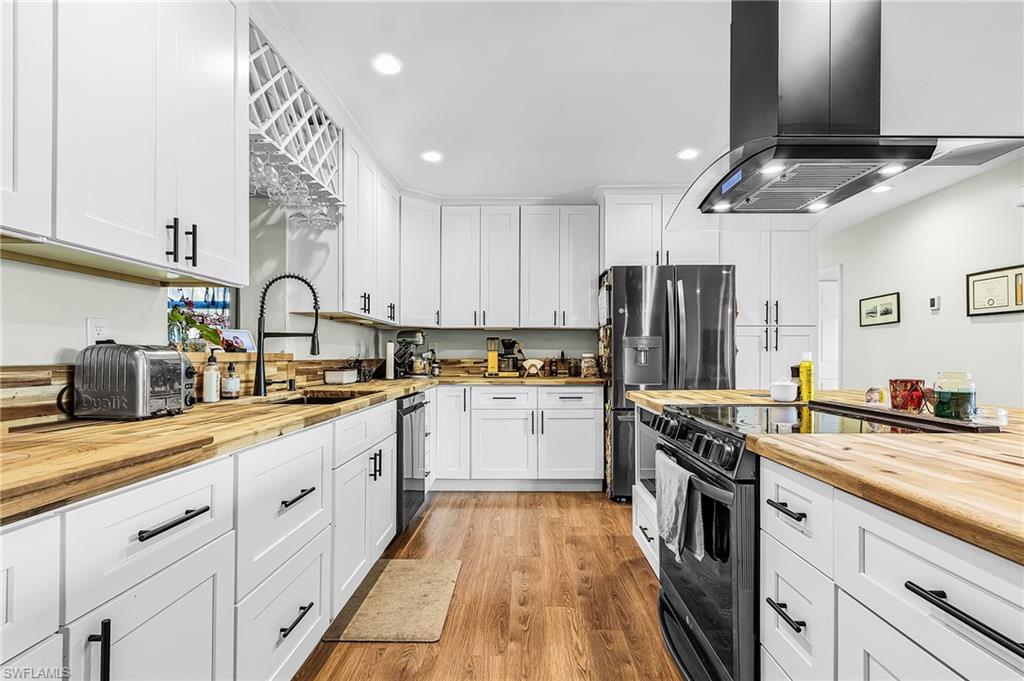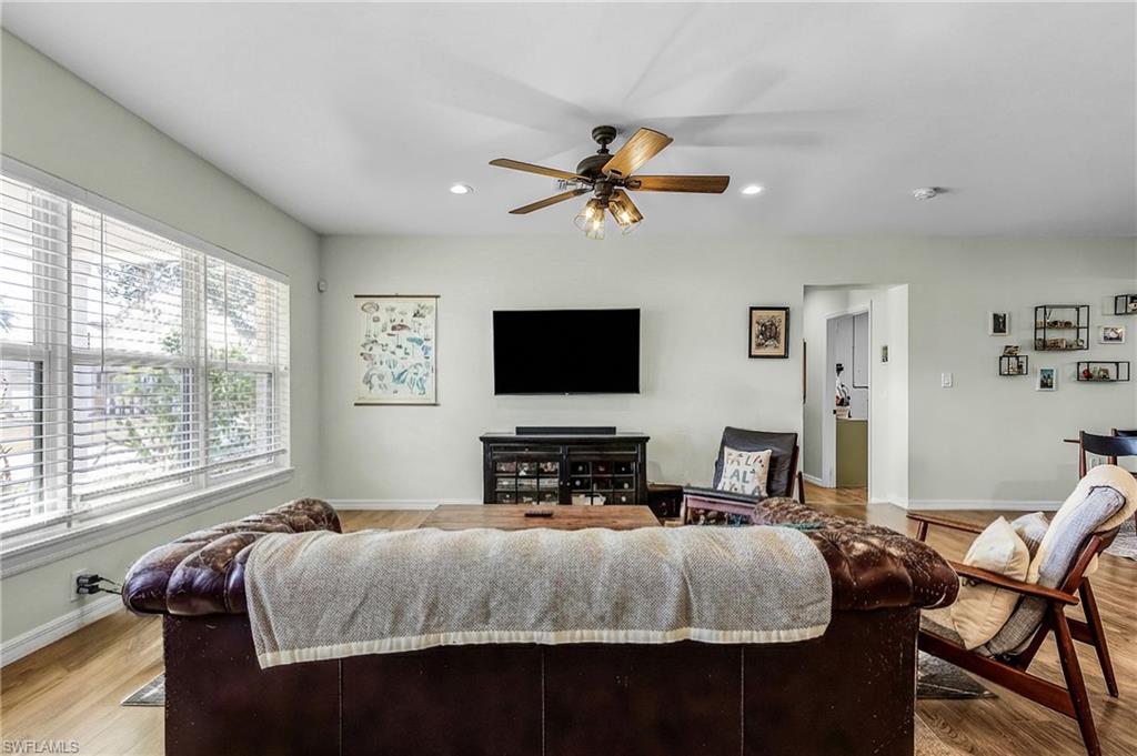 Gulf Access. Totally updated one level living ranch. Three bedrooms + sunroom, 2 bathes, 2 Car Detached Garage. Open Floor plan from Great Room to Gourmet Kitchen, Upgraded Stainless Steel Appliances, Large Island with Butcher Block Countertops. Gorgeous composition flooring throughout home. Large laundry room with new washer and dryer, laundry sink. Primary Suite has a walk in tiled shower. Second two bedrooms share a guest bath with bathtub. A lovely sunroom can be used as a den or study also. Custom shades on the impact windows. Spray Foam Insulation Rated R30. Great savings on electric bill. 600 Sq Ft extended double car garage w 2 bay doors. Garage pad is poured prepped for an auto lift. There is direct access to the Caloosahatchee River. This is a boaters dream located on a quiet cut-de-sac. Private boat dock. Sit around the Firepit and enjoy the nature. Great location minutes to I75, West of Franklin Lock and dam on river to Gulf Waters.