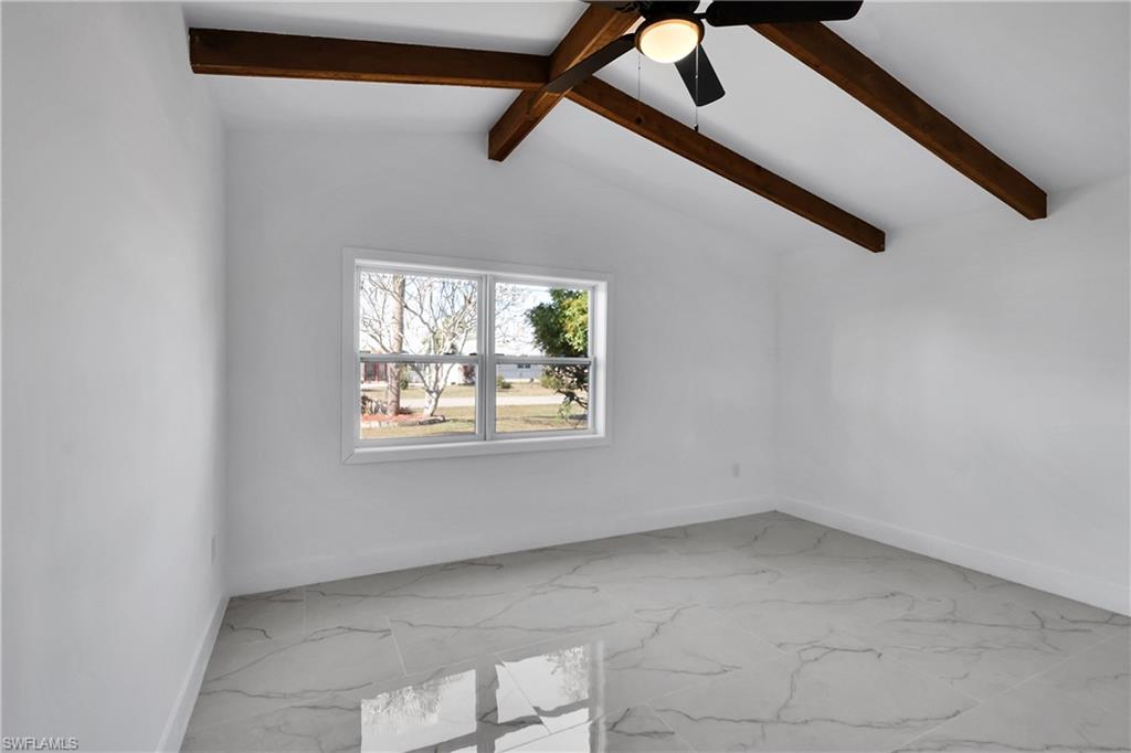 Fully remodeled canal-front home featuring 4 bedrooms, 2 bathrooms, and an open floor plan. Updated kitchen (2019) includes white quartz countertops, stylish cabinetry, stainless steel appliances, double electric oven, and gas stove. Great room offers a wood-burning fireplace with rustic stone detail. Laundry room and 2-car garage provide additional convenience. Home is equipped with surge/storm protection barriers for added security and peace of mind. Enjoy canal views from the large screened lanai, outdoor entertainment space, and private dock. Dock includes two boat lifts u2014 one up to 8,000 lbs and one up to 25,000 lbs u2014 Accommodating large boats. Choose your dock! Additional 8.5 ft x 15 ft concrete block utility/storage building on property. N.