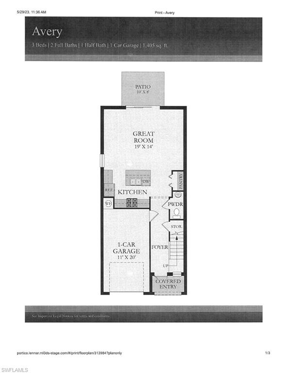 3 Bedroom 2 1/2 Bath Town Home located in the GATED community of Portico. This Home features tile floors on the main level, Stainless Steel appliances, Quartz counters, open concrete patio and a 1 car garage. Portico features a community center with a community pool, fitness center, basketball courts, tennis courts and pickle ball courts. Beautifully landscaped community with lots of walking and jogging paths with multiple lakes.
